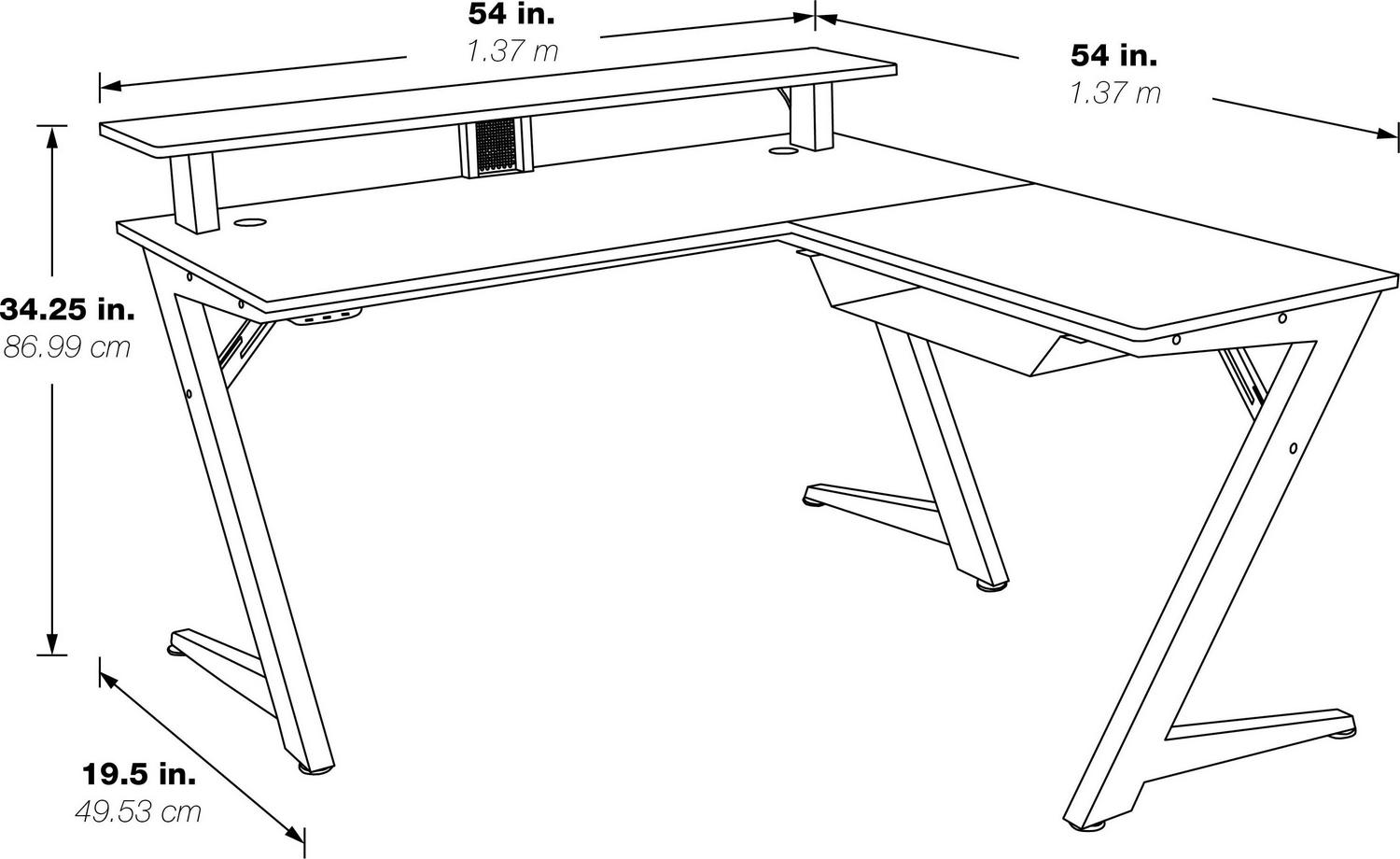 Impact your gaming experience with the Avatar Battle station Game Desk. Raised monitor shelf positioned for an ideal viewing height, reduces neck, shoulder and eye fatigue. Expansive L shaped configuration provides substantial room for all your gaming gear. Immerse yourself fully in your gaming experience with Bluetooth RGB LED lights. Customize the location of your power up preferences with our magnetic 3-port smart power USB hub. Integrated storage along with our power strip bracket and cable management system keeps your area distraction free. This desk supports a seamless transition from gaming to work station. Sturdy steel construction in exciting red with matte black game surface will last for years of competitive enjoyment.