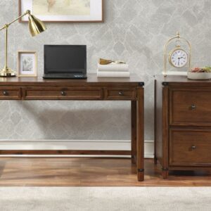 Create a home office that is both smart and beautiful. 3 Framed drawers keep office supplies and accessories close at hand, organized and out of sight. Hand rubbed burnished hardware adds a rustic industrial charm that allows this desk to sit pretty in a home office or front and center in a living room or family room setting. The sturdy, stringer design keeps the back open keeping the aesthetic of this desk light and airy and ready to be situated anywhere in the room. Plenty of work surface for your laptop and favorite devices, along with essential books, lamp and décor. Add our Baton Rouge 2 Drawer File Cabinet to complete this home office suite and turn working from home into a true pleasure.