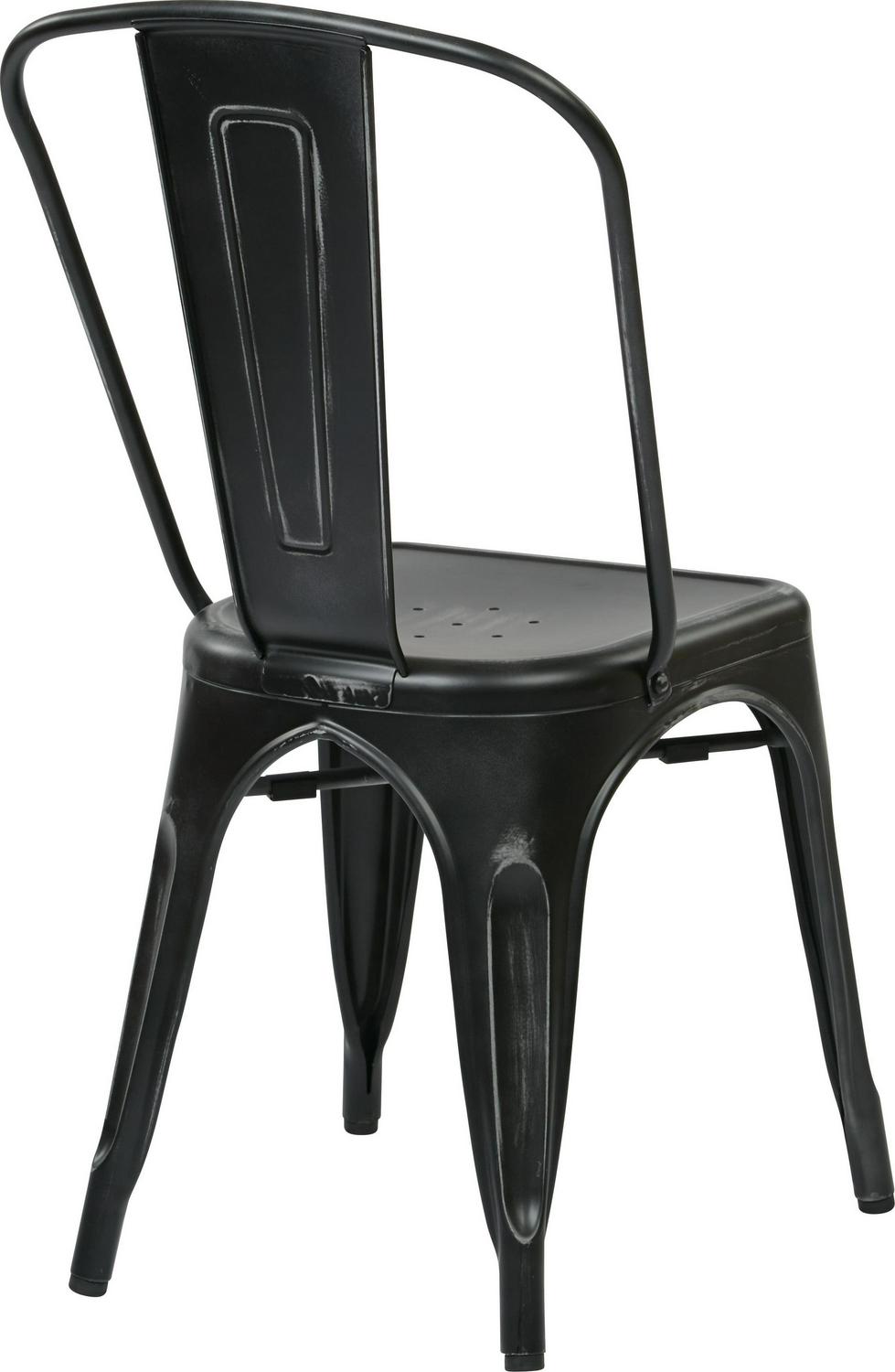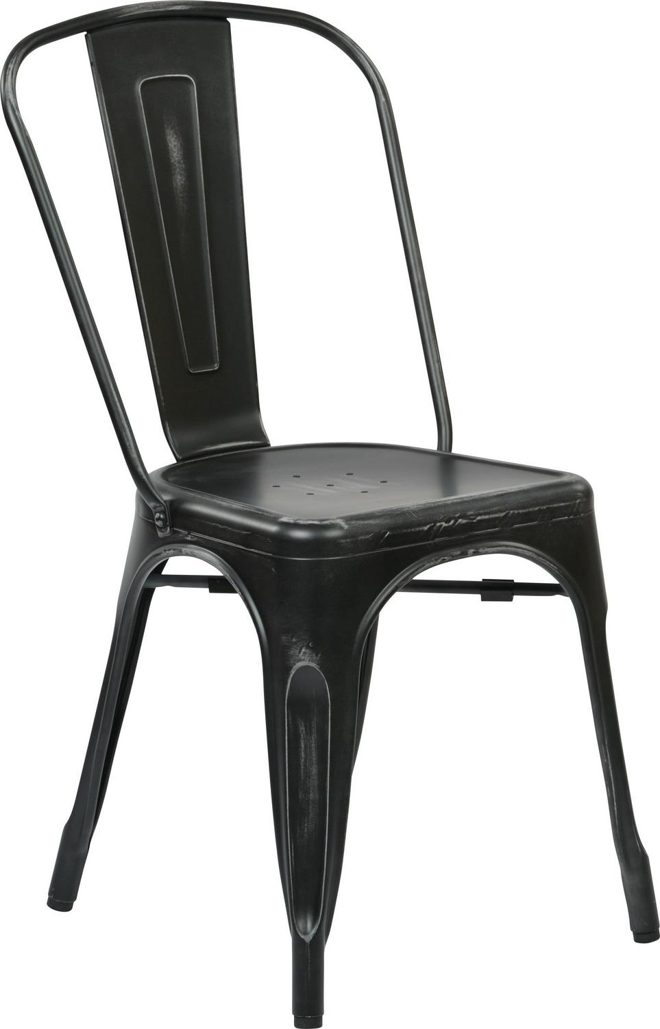 The Bristow Collection s Industrial style will enhance the look of kitchens, bar areas and workshops. Finished with a scratch resistant epoxy, the Bristow metal dining chair is constructed of heavy gauge metal to provide many years of daily use. A hand applied antiquing process creates a simulated aged look unique to each piece. Rubber floor protectors prevent sliding while eliminating scratches. Easily stackable and fully assembled.