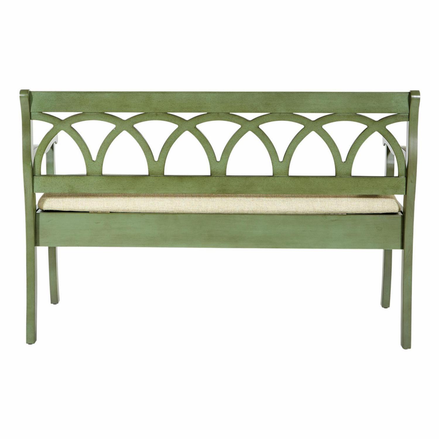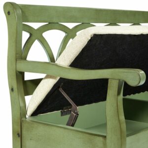 OSP Home Furnishings Coventry Storage Bench in Antique Sage Frame and Beige Seat Cushion K/D