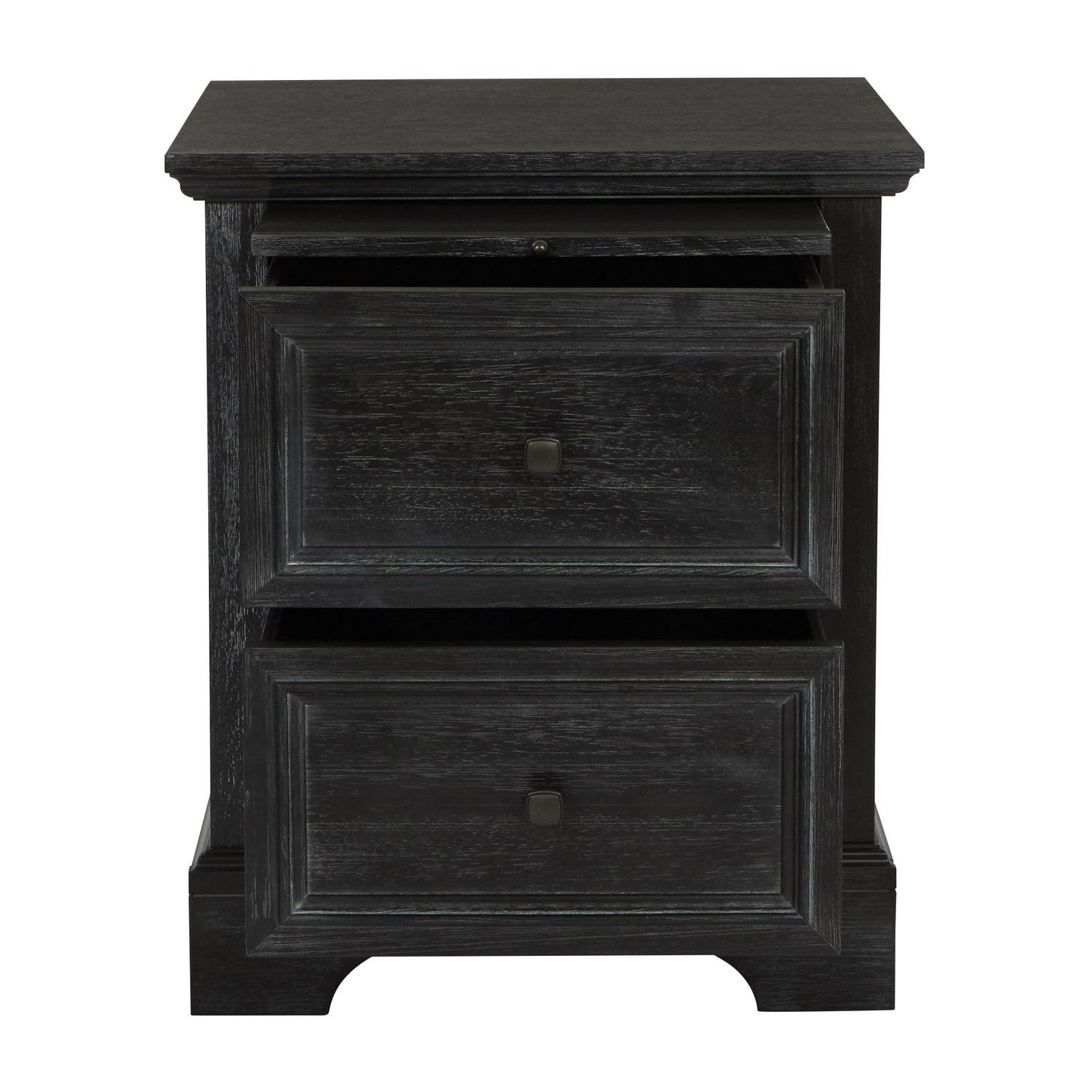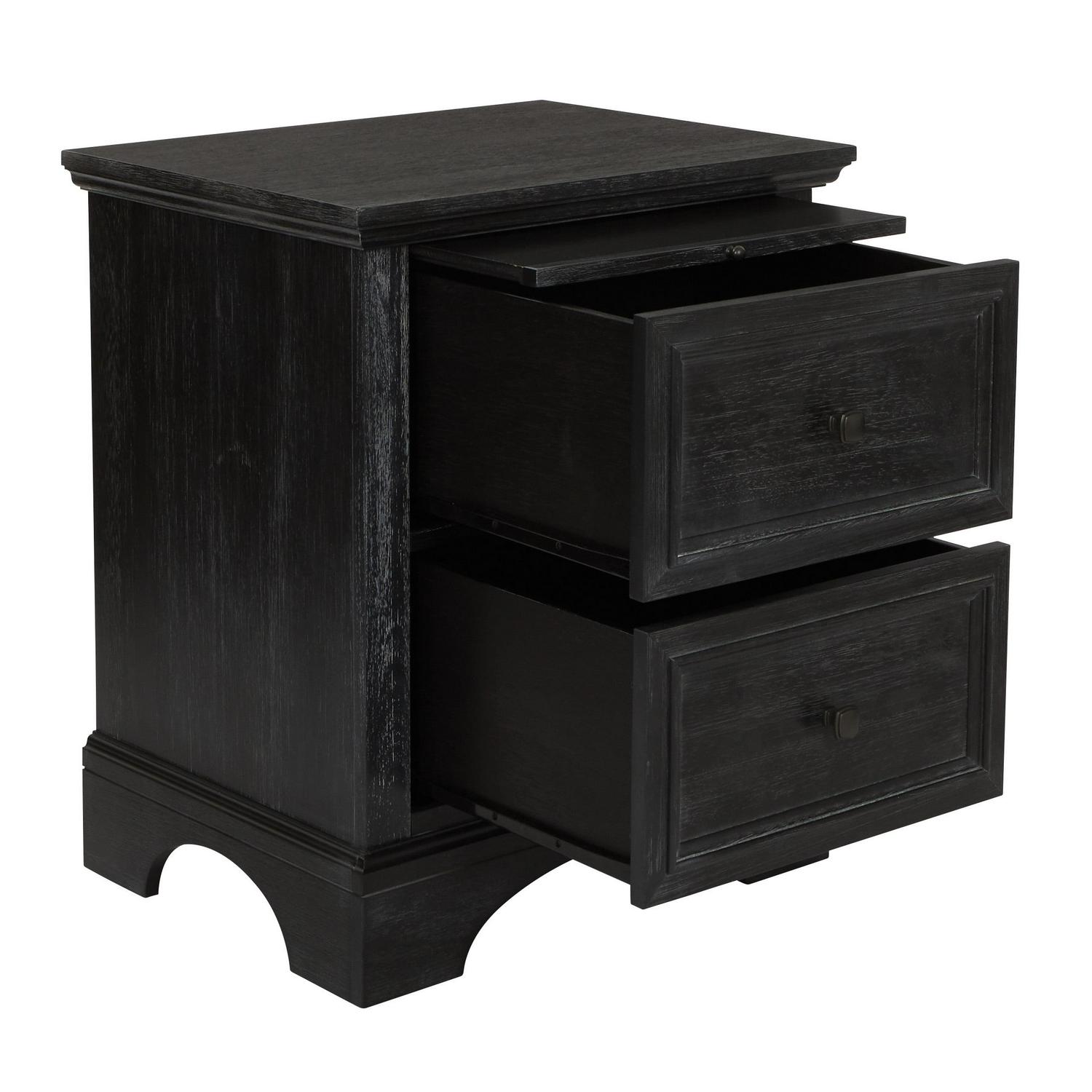 OSP Home Furnishings Farmhouse Basics 2 Drawer Nightstand with Tray in Rustic Black Finish