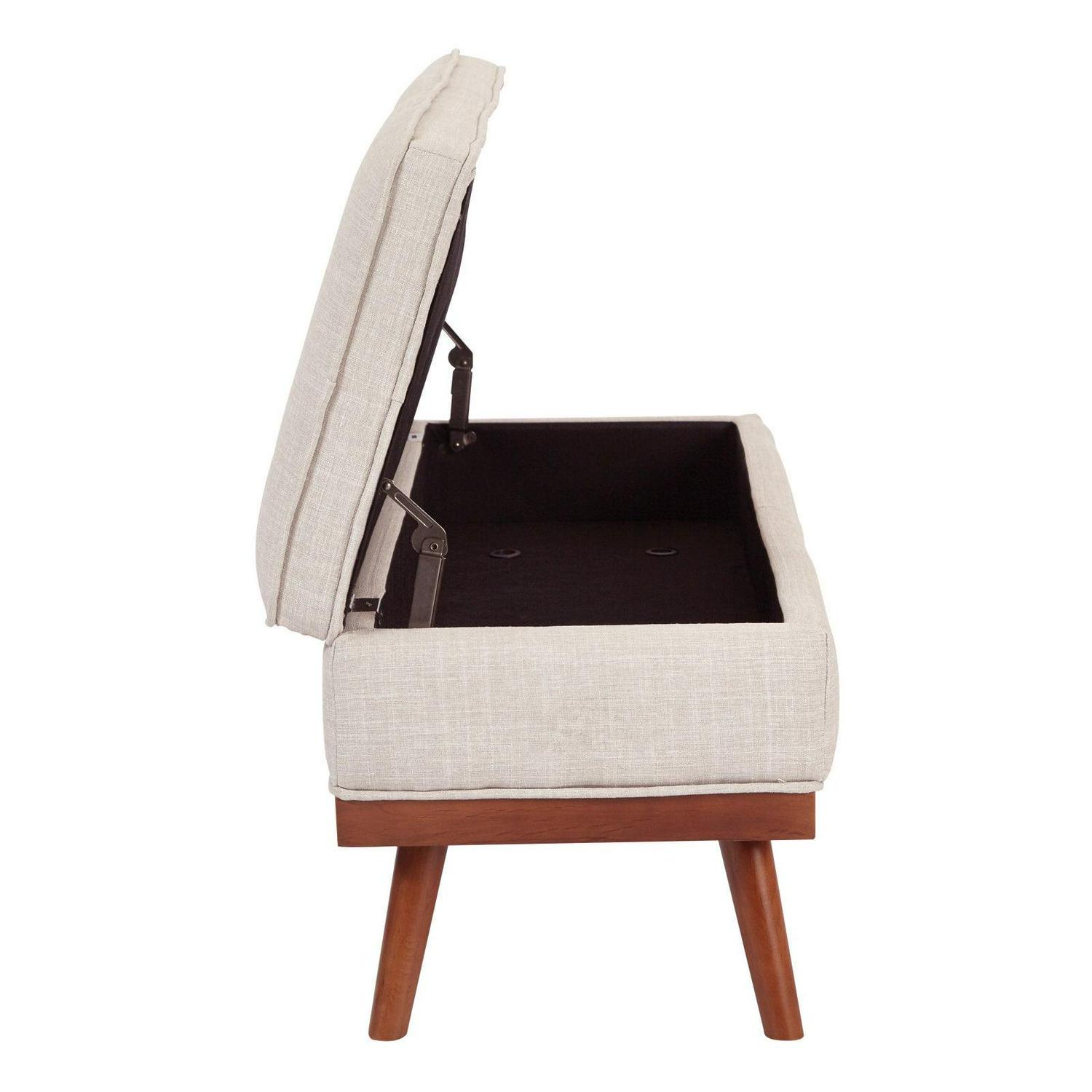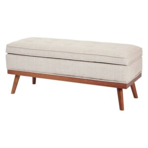 OSP Home Furnishings Katheryn Storage Bench in Fog Fabric with Light Espresso Legs