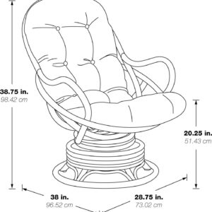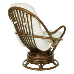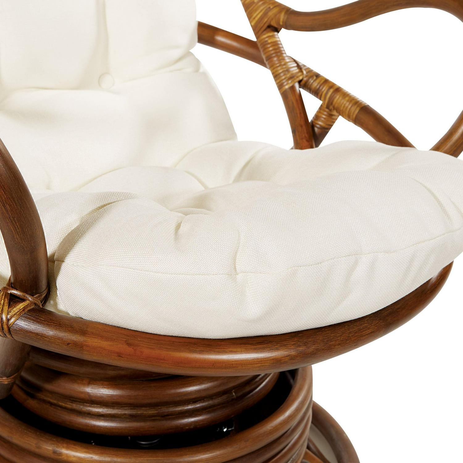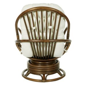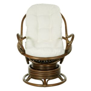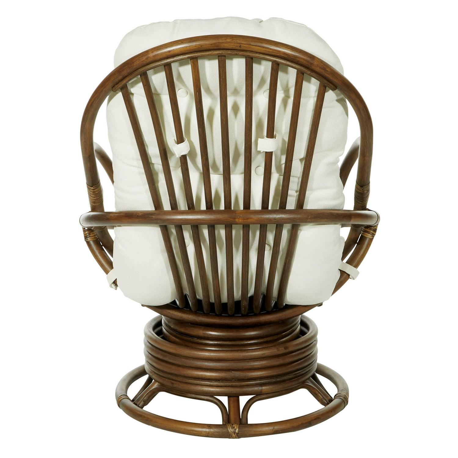 Kick back and relax with our Kauai Rattan Swivel Rocker. This woven rattan rocker will turn up the wow factor in any room. A great seating option for watching movies, gaming or just kicking back and taking it easy. Plush poly-fill cushion with channel pocket stitching, in 100% Polyester, creates billowing comfort. Simply tie cushion onto solid rattan and woven frame. Smooth ball bearing swivel action and relaxing rocking motion will ease away the day s stresses while adding natural Boho style to your home. Simply untie the ample removable cushion and shake out to fluff up for years of sublime, cozy comfort.