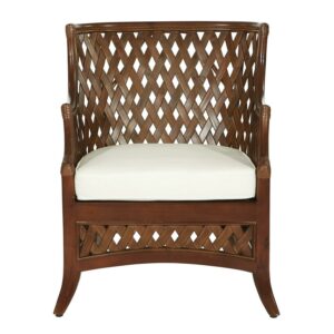 Update any room with trending rattan! Our Kona Rattan Chair by OSP Home Furnishings will bring elegance to the dining room, casual charm to a living room, and a gracious welcome to any entry. Beautiful, hand-woven, crushed bamboo creates a sweeping approach to this accent chair’s design, while a solid hardwood frame adds an enduring style. Our deep cushion sets on traditional webbing, allowing breathable comfort and a classic look and feel that pairs with a variety of interior designs. Plastic foot caps offer scratch-resistant protection to your floors and provide an easy-glide arrangement of our furniture.