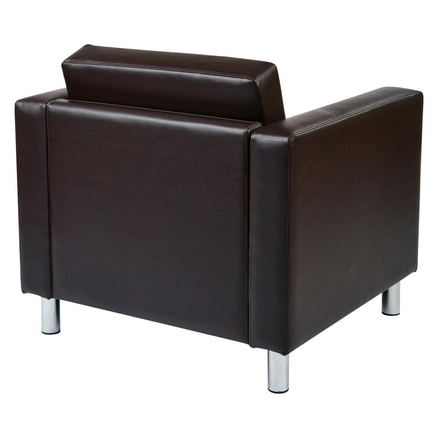 Subtle grace and affordable comforts are guaranteed with the Pacific Armchair from Avenue Six. This club style chair is designed with a contemporary edge in high performance, easy care vinyl. Equipped with a durable box spring seat that ensures your relaxation is well protected. All outfitted with silver leg finishes that prop this chair up and give it a chic display. The crisp, modern architecture of this club chair will certainly impress guests and decorate your home with refined taste.