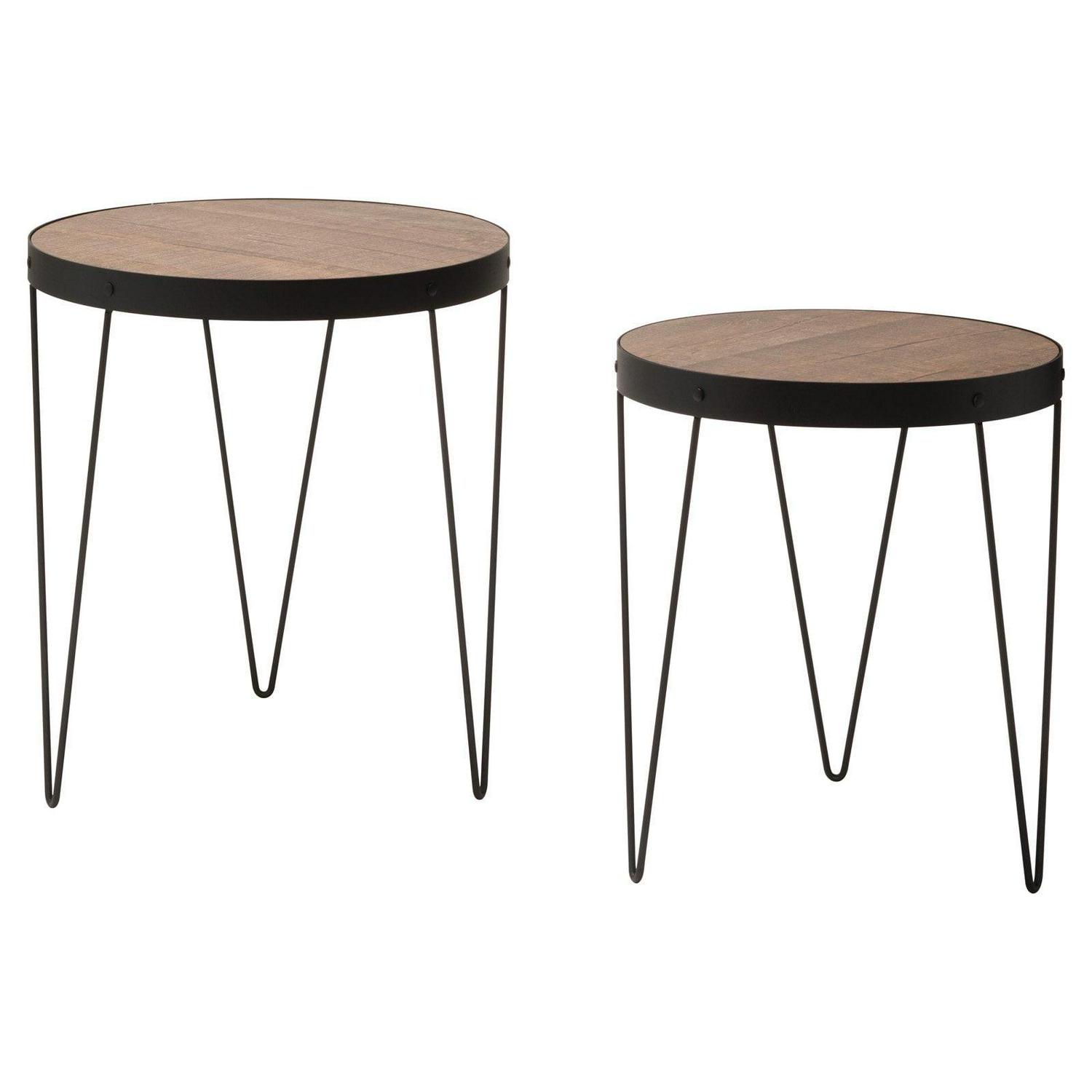 OSP Home Furnishings Pasadena Nesting Accent Tables Set with Rustic calico wood top and Matte Black metal frame 2-Pack