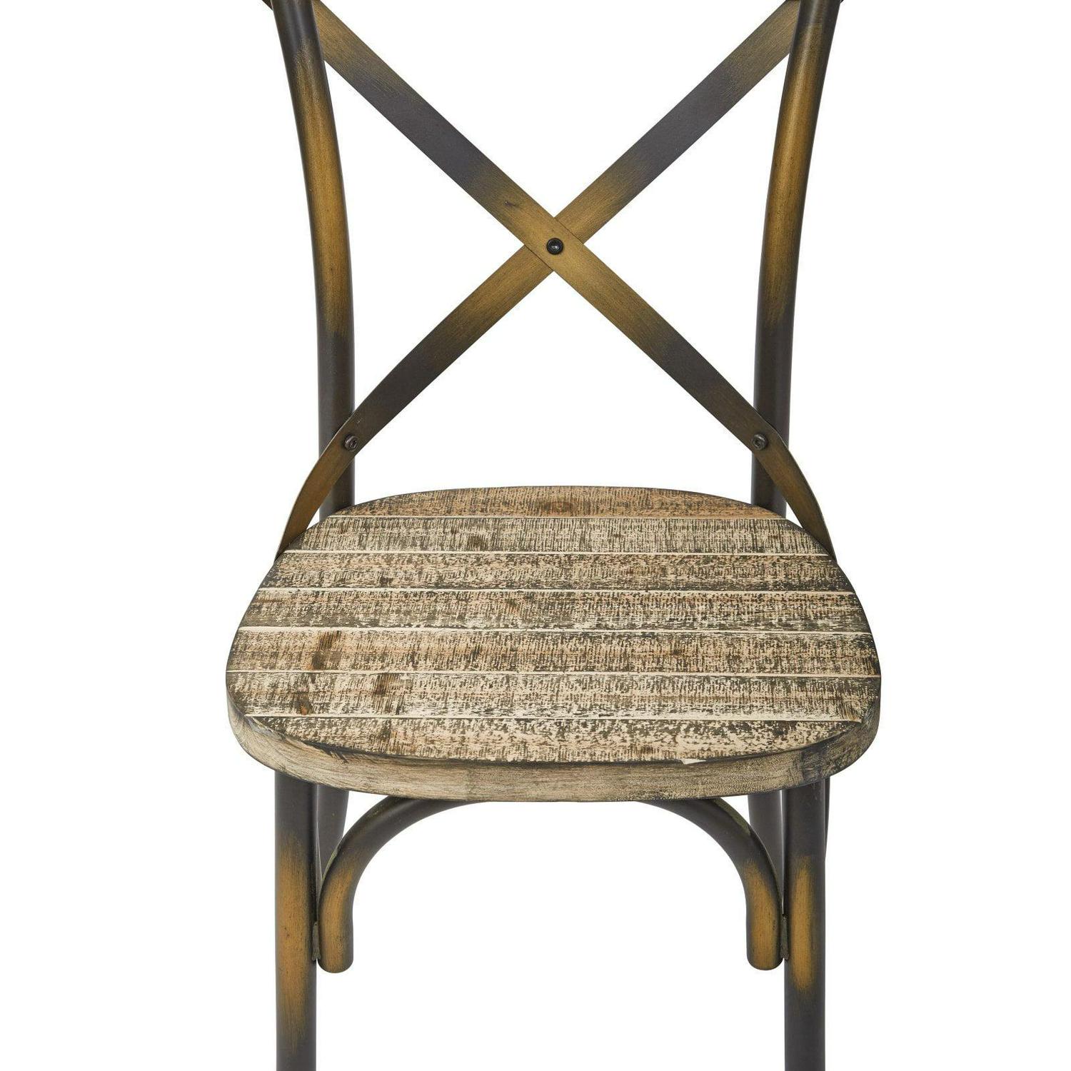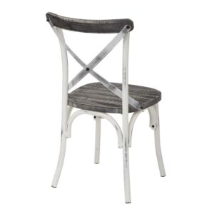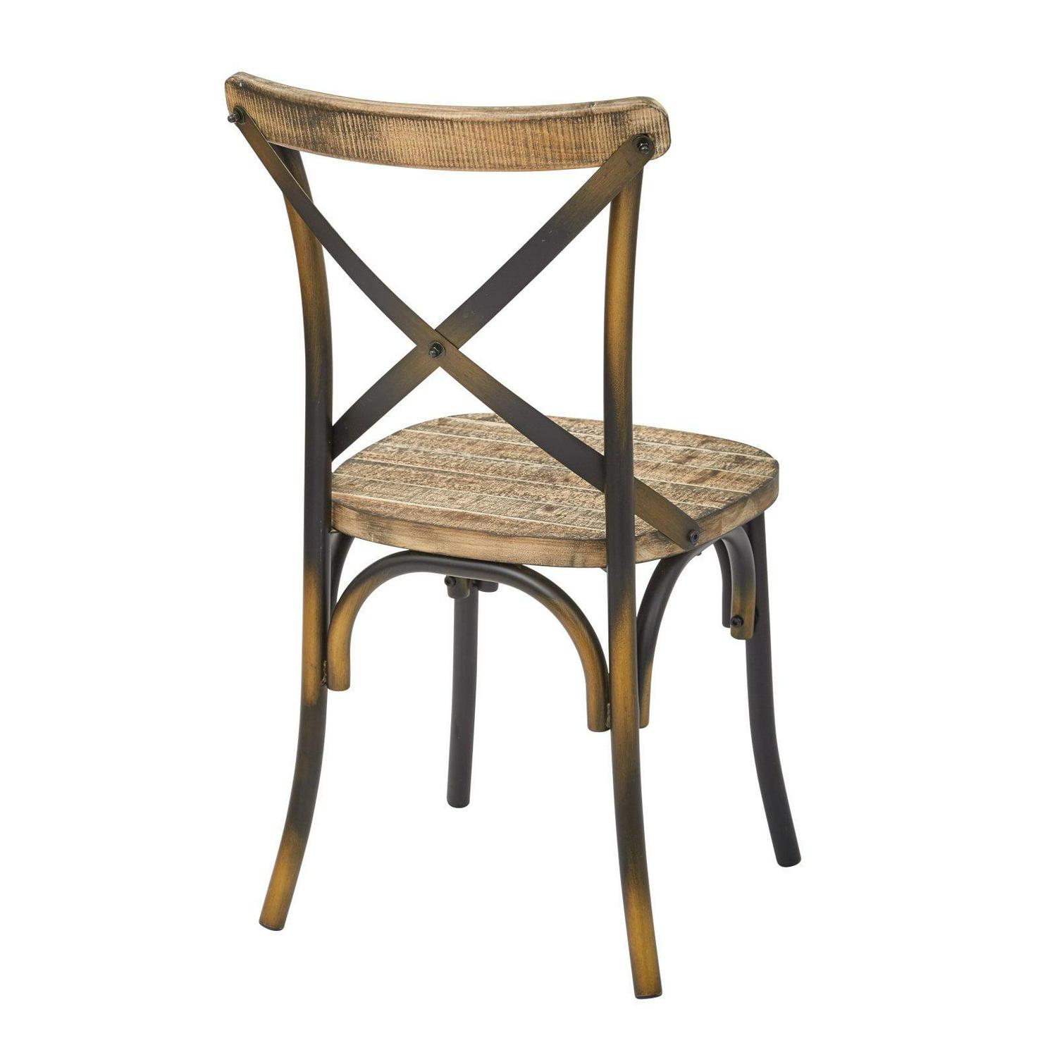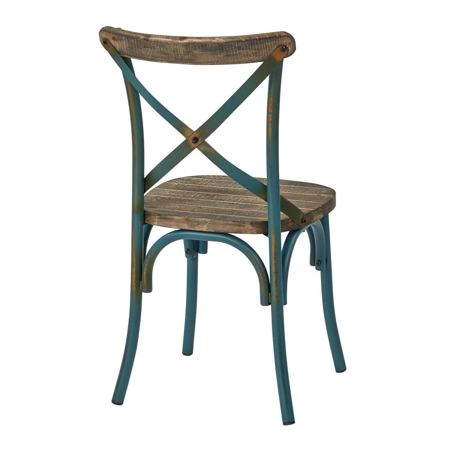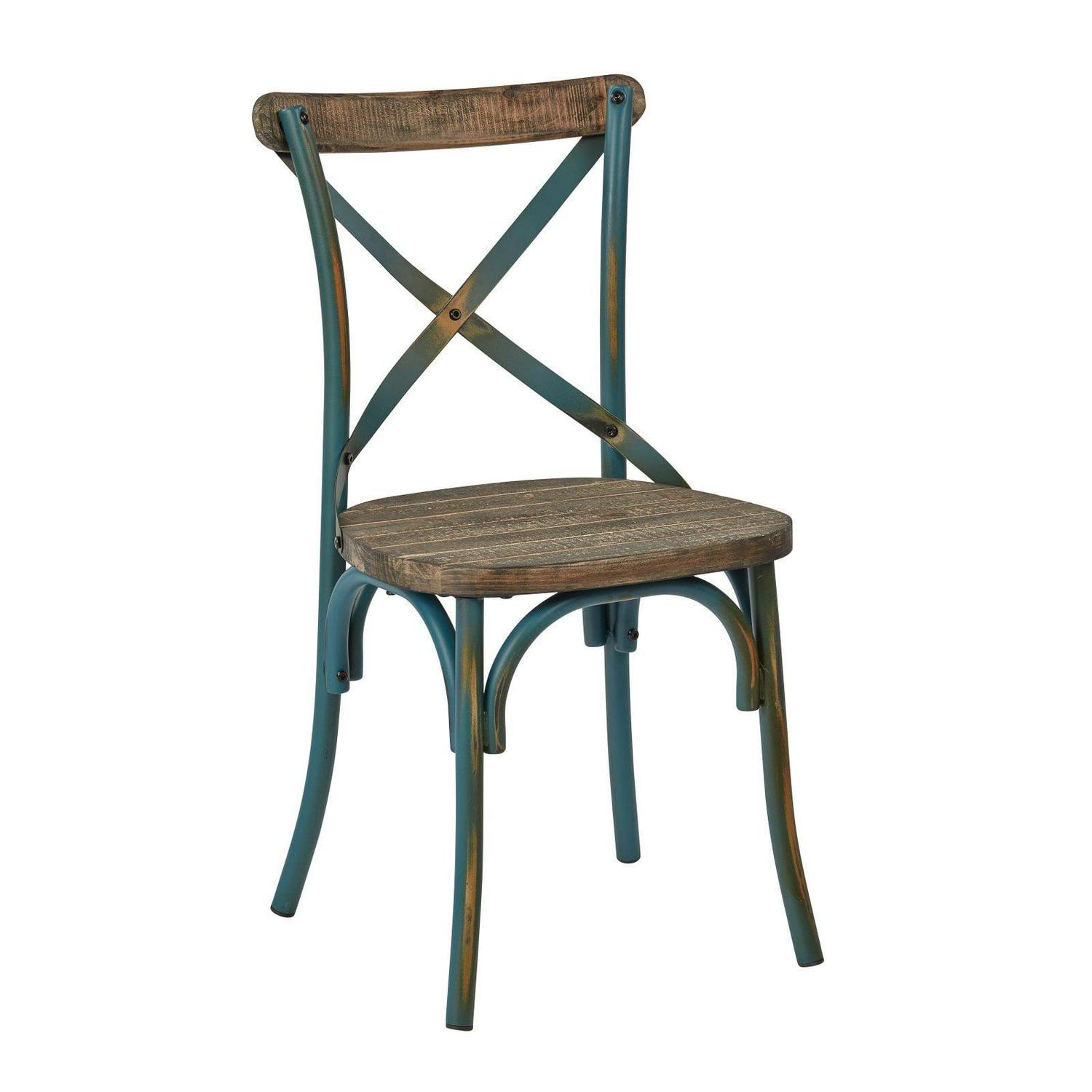 Update the look of your home with the OSP Designs somerset X back antique metal dining chair. Featuring an effortless mix of color and natural wood elements, this chair is the perfect mix of rustic and industrial. Numerous styling elements make this chair s shabby chic aesthetic all the more charming. These elements include a unique X back design and curved edges. A hardwood seat, in a walnut finish, accompanies the chair s antique frame. The same walnut wood can be found on the top of this chair s back. Surround a traditional farmhouse table with a number of these stylish chairs or create a bistro set with two and a small table. This chair is available in antique black, antique red, antique orange and antique turquoise to ensure you find a perfect match for your home. This chair comes ready to assemble.