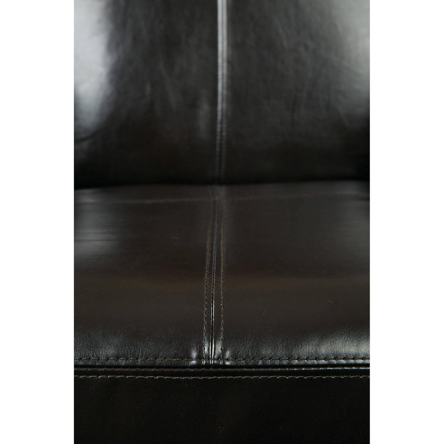 Modern style is clean and dynamic. It embraces uncluttered spaces with uninterrupted lines and intriguing forms. With the new Venus Club Chair from Ave Six you can effortlessly outfit your home with a streamlined seating solution that is destined to be loved by all who enter your space. Fabricated with environmentally friendly and sustainable Bonded Leather, this chair is as responsible as it is impressive. The minimal use of decoration is carried throughout the design of the Venus Club Chair with a handsome deviation in the bisect stitching that graces the backrest, seat, and sides of this geniously simple yet swanky style solution. Seductively stabilized upon deep espresso solid wood legs, this statement of snazzy seating establishes its uptown appeal in any area where it is utilized. Couple all these features with the 100% tool-less assembly and you have a chair that is destined to be loved and appreciated by all who enter your home. Titled after the Roman goddess of beauty, this specimen of contemporary chattel will intermix effortlessly into a wide range of decors from cultured cosmopolitan to time-honored traditional. Currently available in Crimson Red and a limited edition of Deep Espresso. Add to cart now and secure your sleek and sophisticated Venus Club Chair today.