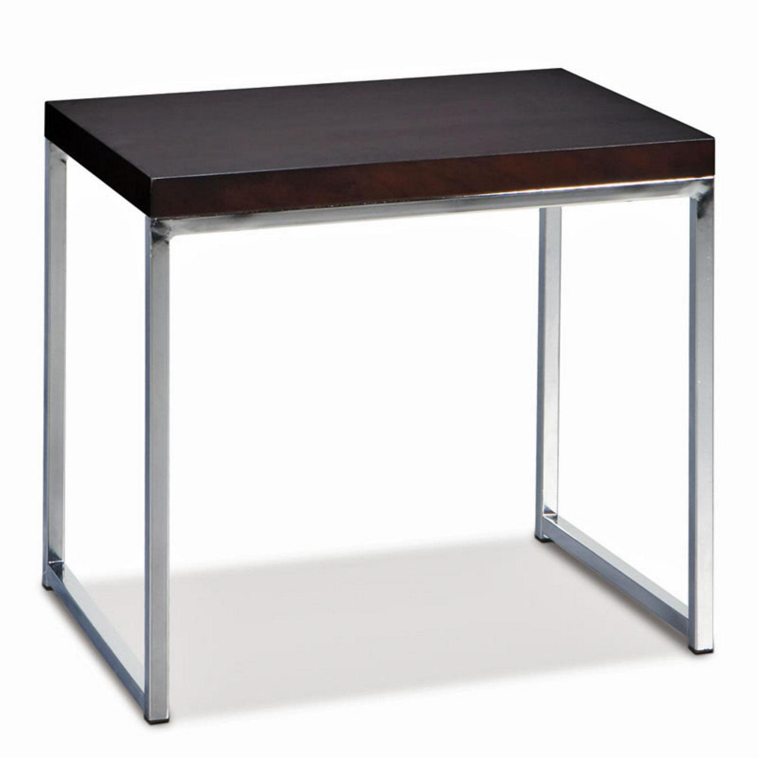 What is cool Cool is real style, not fading fashions. Cool is function, not embellishments. With the new wall st. End table with wood grain top and chrome plated metal frame, your living space will exude an air of distinction and prestige that is certain to be appreciated and loved by all who enter your abode. An undeniably attractive statement piece, this end table blends impeccably into a wide range of decors from modern to traditional, transitional to Asian. Durably fabricated with reinforced beam construction and a thick table top that features a flush wood-to-metal edge that provides for a sleek yet beautifully simple appeal, this table is specimen of simple sophistication. Outfitted with light reflective chrome legs and table top parameter, this wall st. Collection furnishing instantly brightens any space where it is utilized while still retaining its refined demeanor. Add to cart now and start enjoying the wall st. Wood grain and chrome end table for years to come.