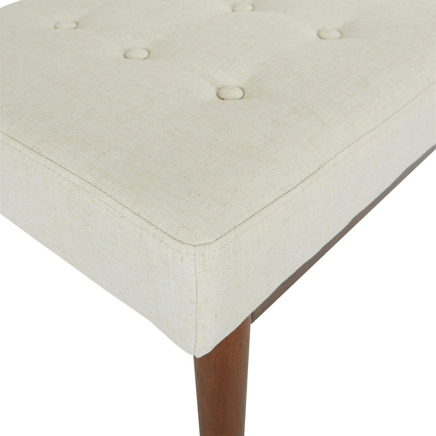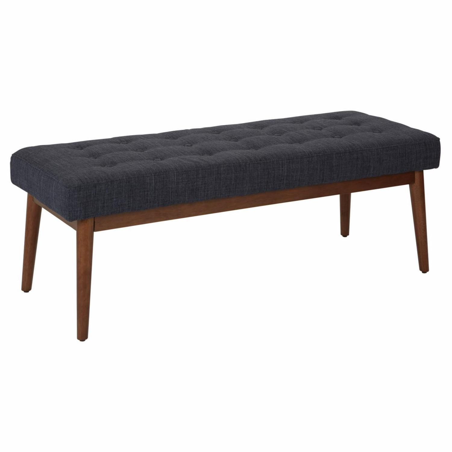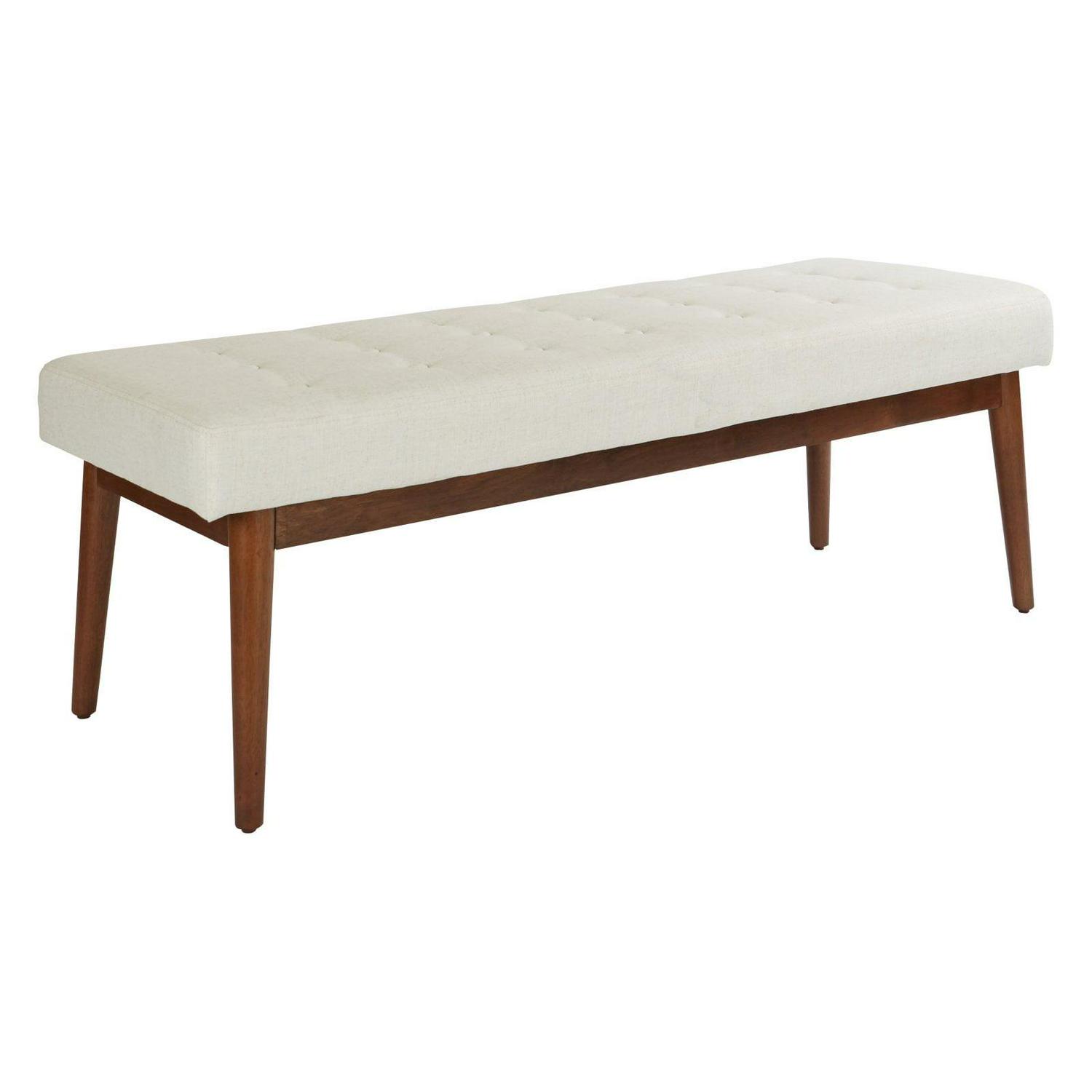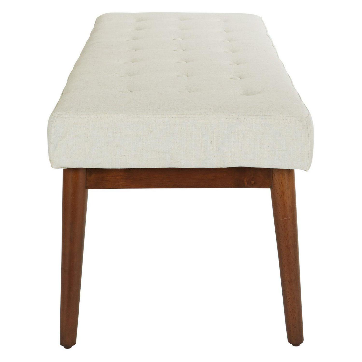 Radiate a cool atomic ranch vibe with this mid-century modern bench. Perfect for a welcoming front entry or a window sitting area. Chic, fashion forward design with flare legs and a button tufted top add retro cool to any room, while the padded bench top provides a plush spot to rest. Get the mid-century style you crave with the Avenue Six West Park bench.