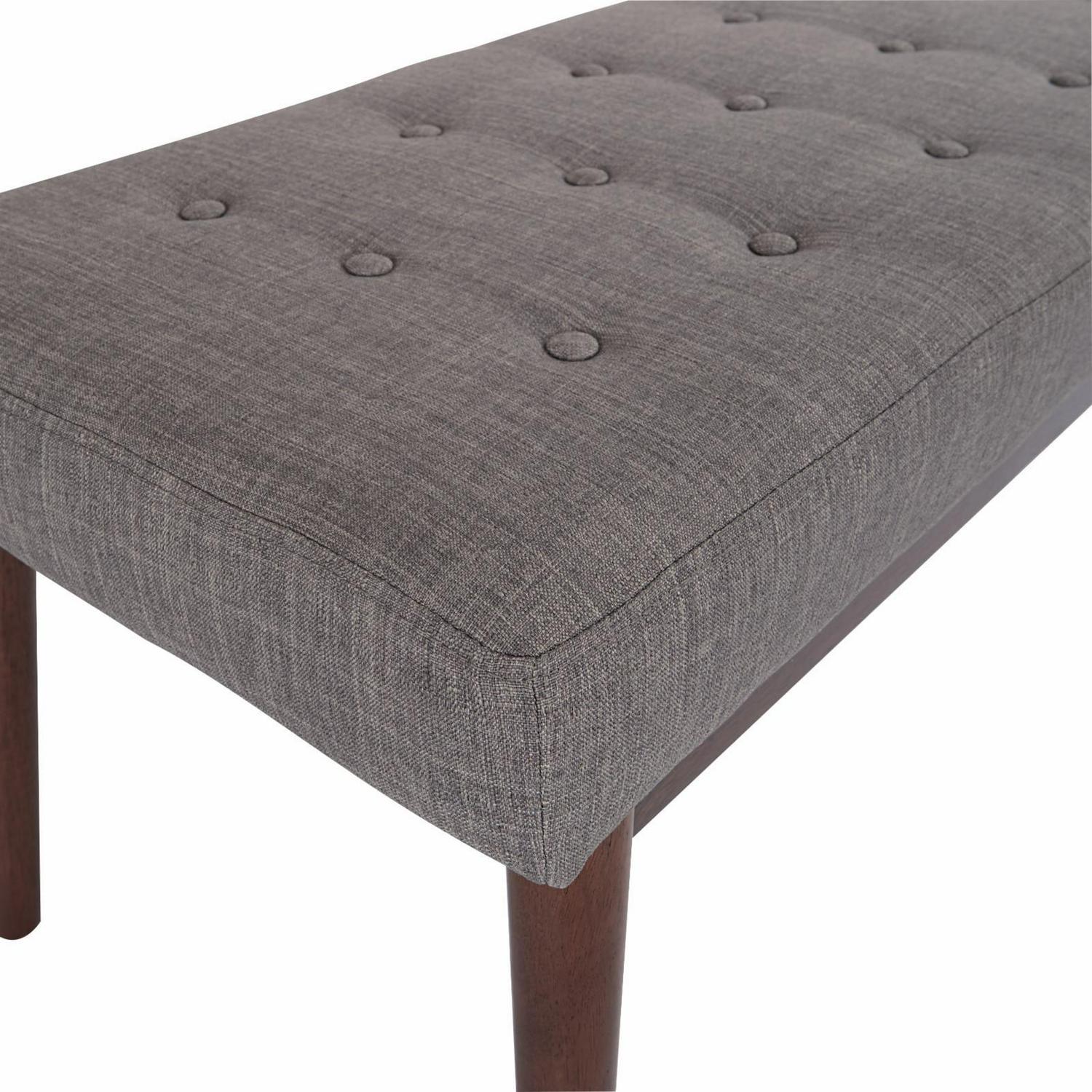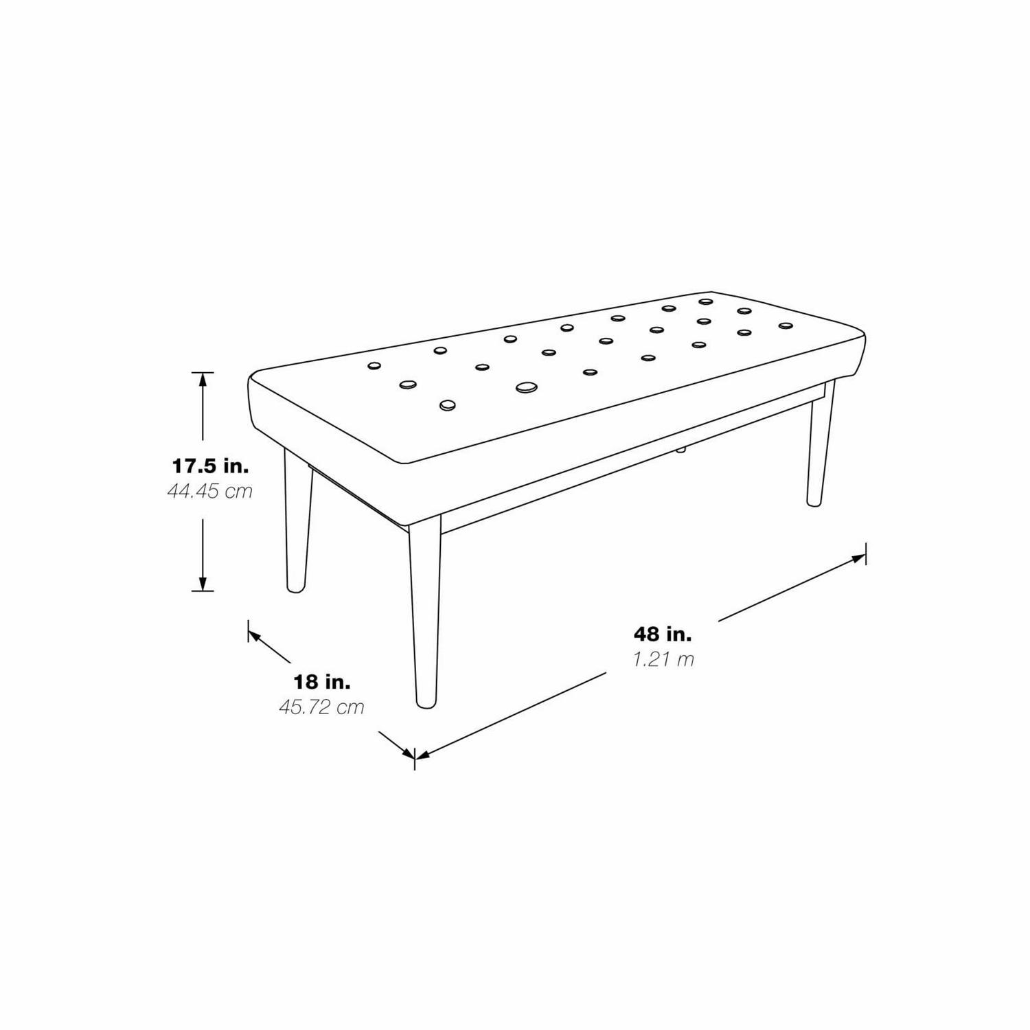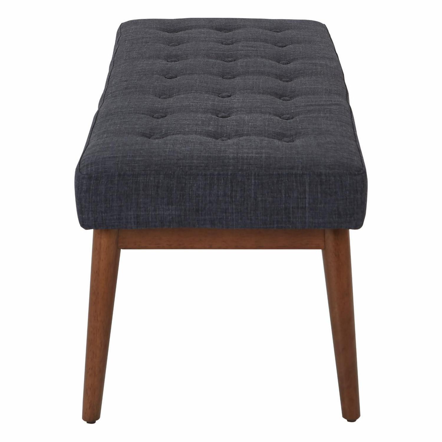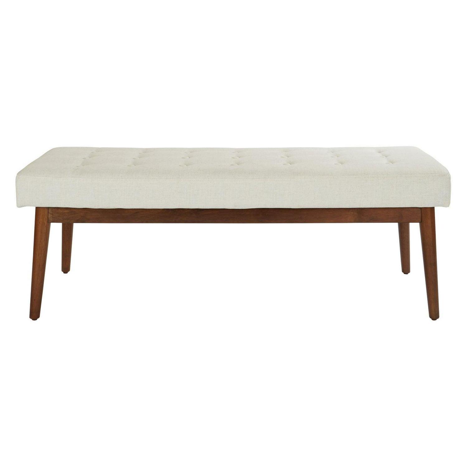 Radiate a cool atomic ranch vibe with this mid-century modern bench. Perfect for a welcoming front entry or a window sitting area. Chic, fashion forward design with flare legs and a button tufted top add retro cool to any room, while the padded bench top provides a plush spot to rest. Get the mid-century style you crave with the Avenue Six West Park bench.