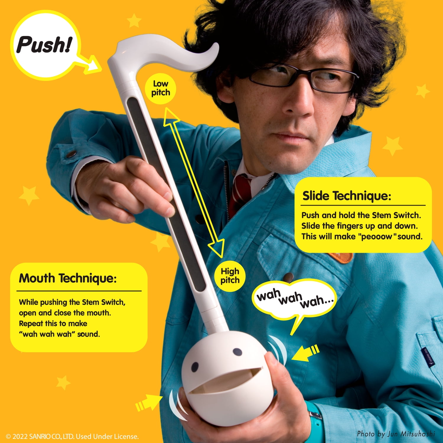 About Gudetama Gudetama is a cute yet moody lazy egg character created by Sanrio, the creator of Hello Kitty. His name is a Japanese wordplay on “gude gude” which describes someone lazy or lacking in energy, and “tamago” which means egg. Originally imagined as a character, Gudetama’s relatability, combined with his undeniable cuteness, has gained him a huge fanbase among adults both in Japan and abroad. The character is now one of Sanrio’s most successful, having amassed the largest twitter following of all Sanrio characters and has become both a millennial icon and a kawaii culture mainstay. What is an Otamatone? The Otamatone is a cute, quirky, and fun to play electronic musical instrument characterized by its eighth note-shaped body, adorable moving mouth, and silly, buzzing, amusingly off-key “voice.” Developed by design firm Maywa Denki, it was first released in Japan in 2009 and has been the country’s best-selling musical instrument ever since. Innovative, unique, and now a popular instrument worldwide, the Otamatone has earned high praise from fans. How does it work? The Otamatone creates electronic tones that you can control based on the position of your finger on the touch-sensitive fretboard. Use a switch on the back to choose an octave and slide your fingers up and down to play different notes. Open the Otamatone’s mouth with a squeeze to change the sound from a hum to an “ahh” and create a “Wah Wah” effect. A perfect novelty for lovers of all things cute, silly, and weird, the Otamatone also makes a great gag gift, and a unique and amusing gift for violinists and other musicians. Size 4” x 17” x 8.5” Powered by: Deluxe: 3 AA batteries (Included)