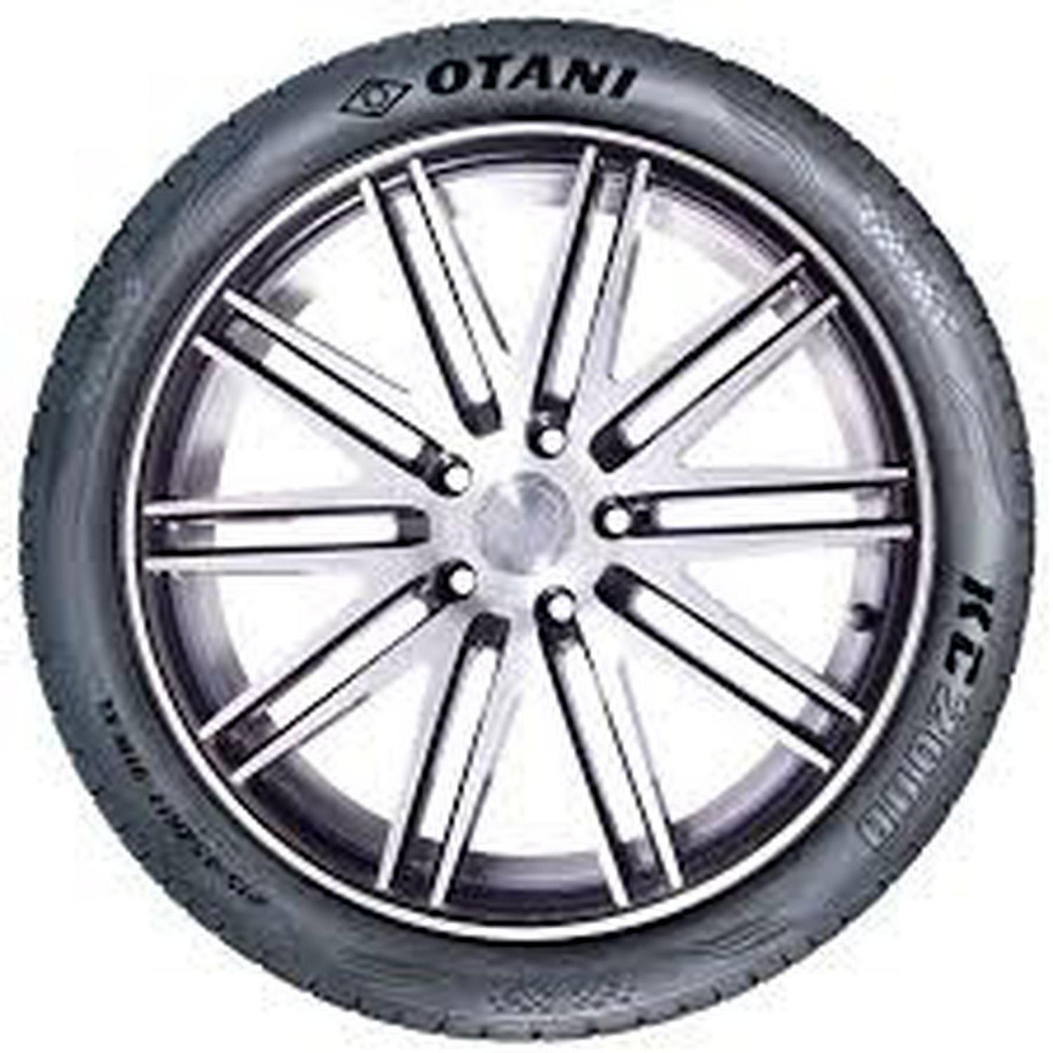 The high-performance Otani KC200 tire is designed for passenger cars. It features an asymmetric tread design that delivers smooth and quiet rides. On wet surfaces, its wide grooves evacuate water from the contact patch while siping increases grip. The continuous center rib yields superb handling and enables shorter braking distances. The robust carcass enhances high-speed ability while the optimized footprint evenly distributes stresses to ensure even wear and improve ride stability.