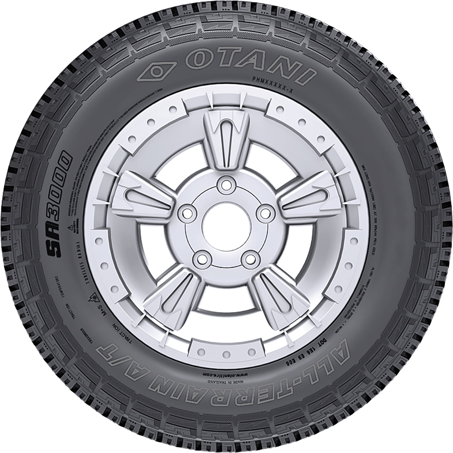 Otani SA3000 OVERVIEW The Otani SA3000 is an all terrain, all season tire made for SUVs. The aggressive tread design and its strong rubber compound improve traction on all terrain surfaces. The large tread elements increase traction on soft, loose, and uneven terrains. It firmly grips the surface, which keeps forward motion. These elements improve on- and off-road performance. At the same time, the self-cleaning tread disperses mud, snow, and rocks stuck between the tread elements, which increases surface contact. This continuous surface contact boosts the steering response time and accuracy to the driver’s commands, while the structure is stabilized against driving pressure. The model promotes excellent performance throughout the year. The ideal tread design maintains the road and terrain contact throughout the year, while the all season compound keeps the rubber flexible in changing temperatures. They increase the road grip in dry, wet, and winter-weather conditions. Also, wide grooves along the tread area disperse water and slush from the footprint, in order to resist hydroplaning. The tire also boosts its service life and usability. The ideal tread pattern evenly distributes the driving pressure along the tread area, which ensures even wear. The wear-resistant compound significantly decreases the model’s treadwear rate. Their combination prevents irregular and premature wear formations across the footprint, significantly upgrading the tire’s tread life. The Otani SA3000 utilizes a strengthened internal structure and rubber compound blend. This boosts the model’s overall driving durability and damage resistance. This structure maintains the optimal tire shape under the driving pressure affecting it, upgrading its load capacity. The model’s special silica compound resists external damage. It prevents punctures, cuts, and tearing from harming the tire’s tread area and casing. These elements enhance driving safety levels during its on- and off-road ride. Manufacturers recommend changing tires every 10 years. As long as tires are properly stored before they are sold, the year of their manufacture will not shorten their service life.