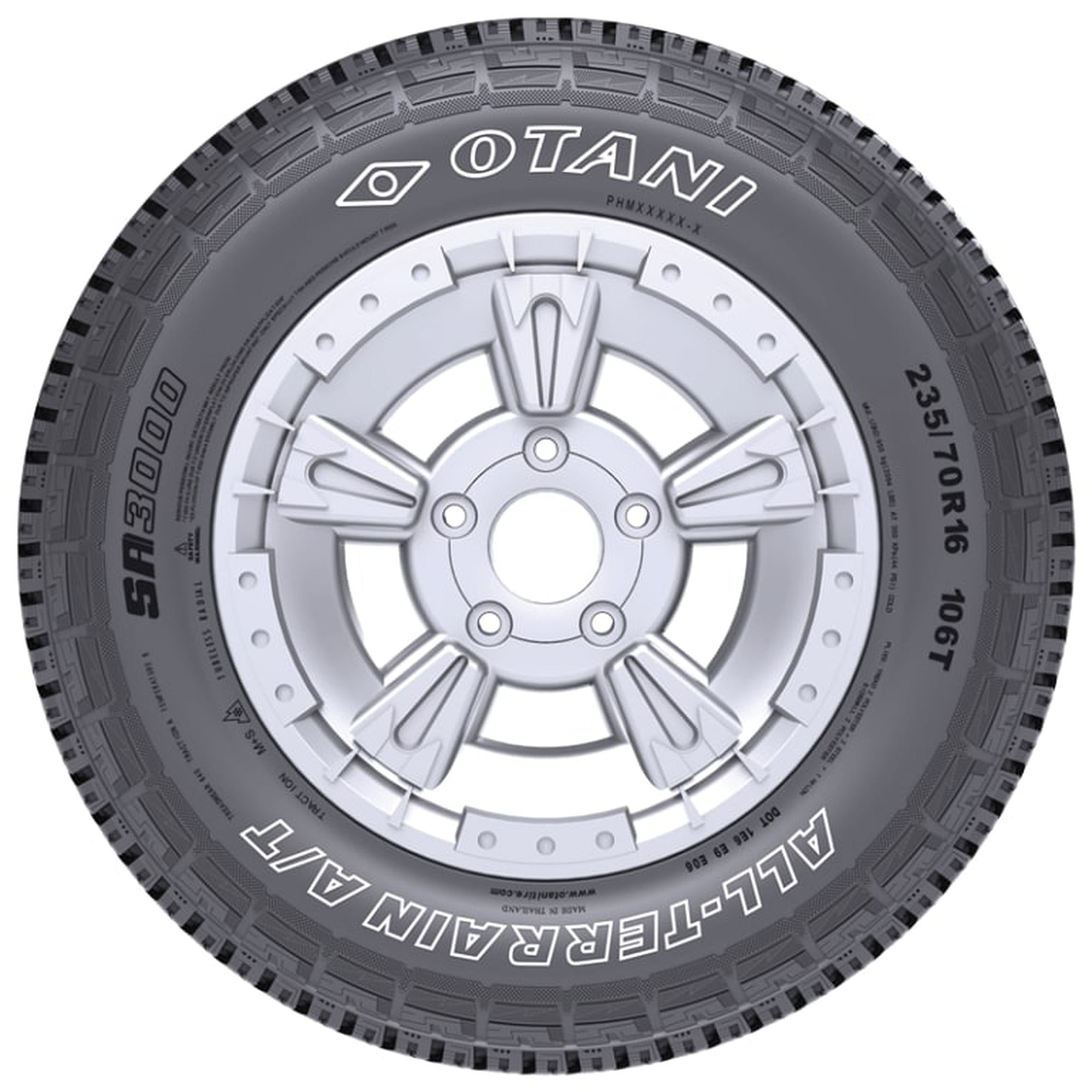 Otani SA3000 235/75R15 109T XL OVERVIEW The Otani SA3000 is an all-terrain tire that features four deep ribs which improve wet grip and performance, while also enhancing mileage on- and off-road. Grooves and 3D sipes improves traction, and 3D sipes keep the tread blocks rigid for a longer tread life. The SA3000’s shoulder design drains mud and snow from the tire for better traction and performance on- and off-road.