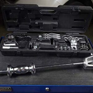 OTC underhood and undercar special service tools for the modern technician are everything you need to service a vehicle or motorcycle. 5 lb. hammer in polished chrome finish. Pulls flange-type rear axles and most front-wheel drive hubs. Internal and external jaws provide a variety of combinations to pull bearings, gears and seals. Two- and three-way cross blocks and cone provide the perfect jaw configuration for most jobs. Set also includes a grip wrench adapter and a dent puller attachment for sheet metal or other unique pulling requirements. Designed for use with other OTC 5/8 in. – 18 thread slide hammer attachments. Packaged in blow-molded case.