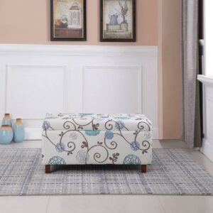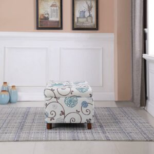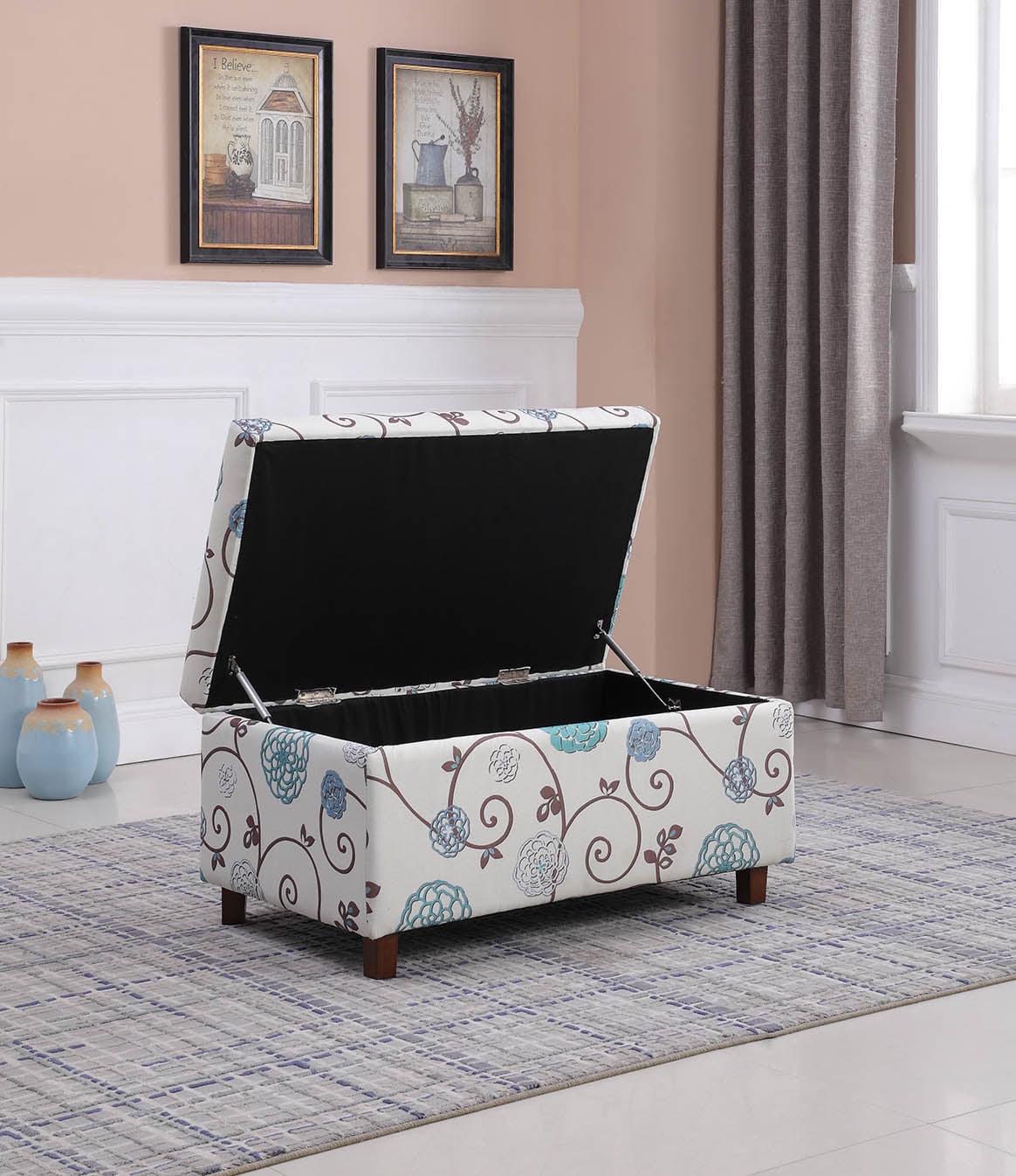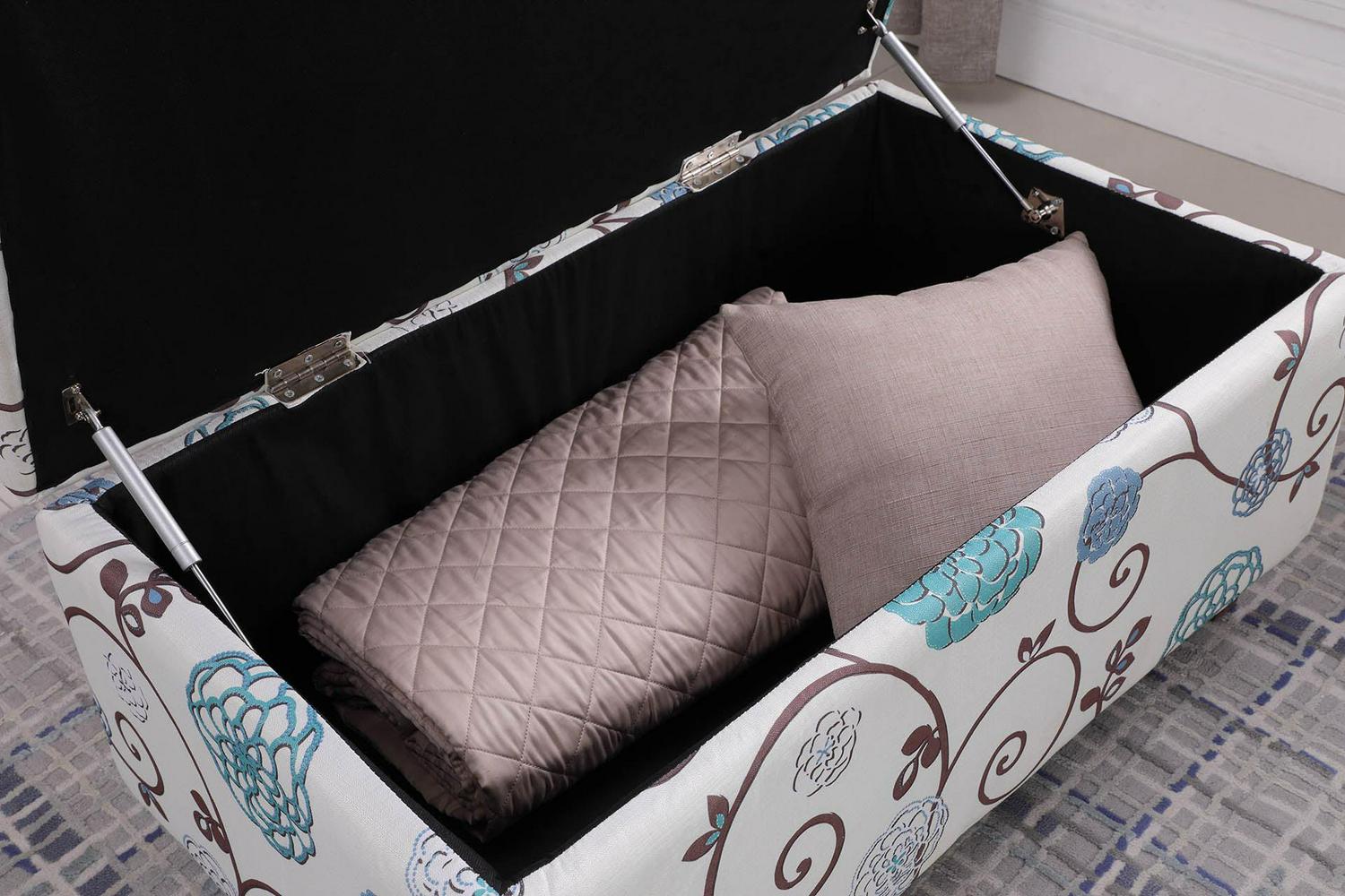 This cushion top ottoman can add a touch of elegance to any room. Pull up the cushioned seat top to reveal a large compartment for organizing clothes, blankets, linens, magazines, books, remote controls, toys, shoes and much more. Gas spring lift used to open the lid for safety and support. Strong and Durable Construction with wood legs, Seat supports up to 300 lbs. on the lid, strong enough for most people to sit on. Hinges on back of the ottoman are covered by same color fabric for consistent beauty. This piece is ideal for plush footrest in the living room and as a stool in communal work spaces, dorm halls, or commercial environments like lounges. It is a great fashion pop for instant room makeover.