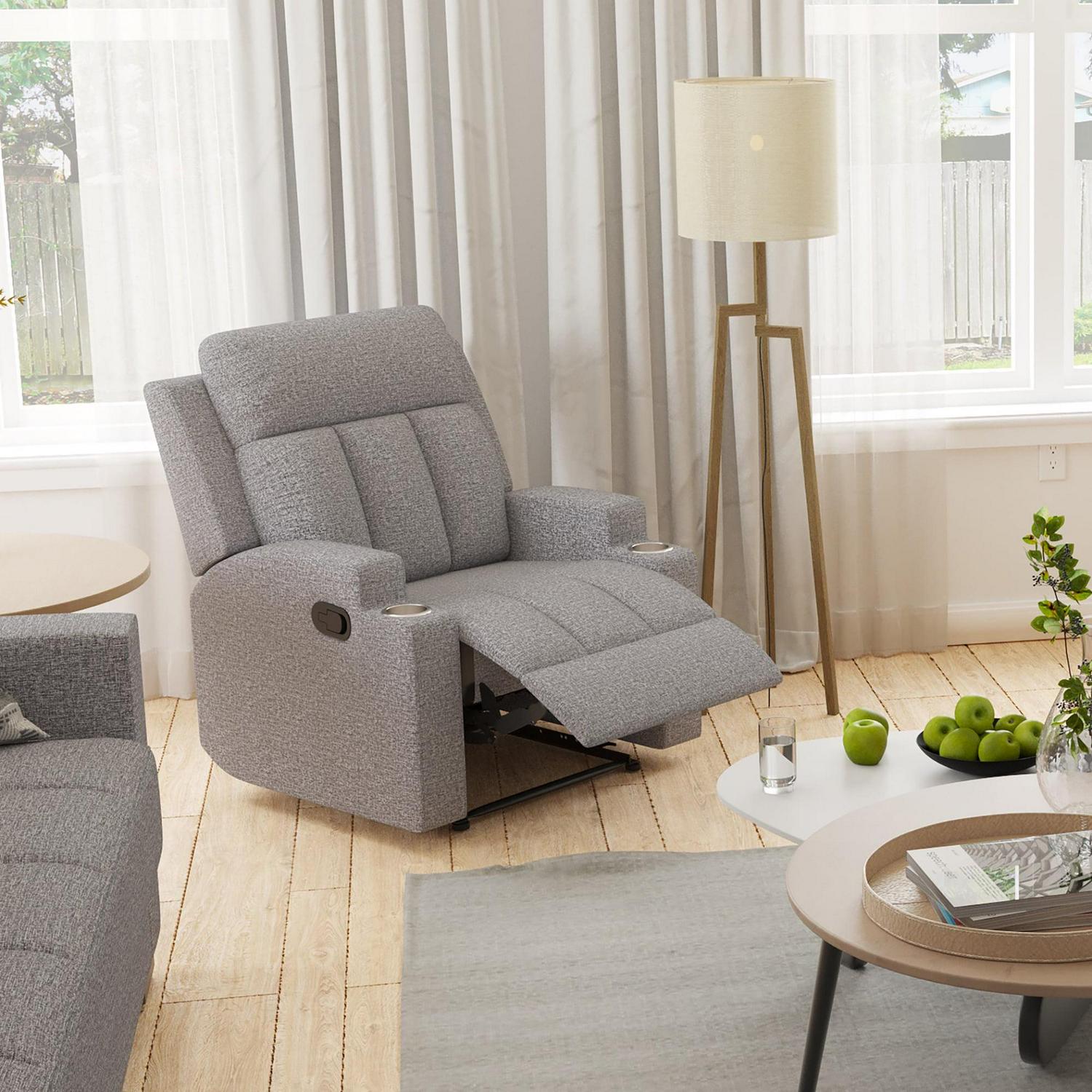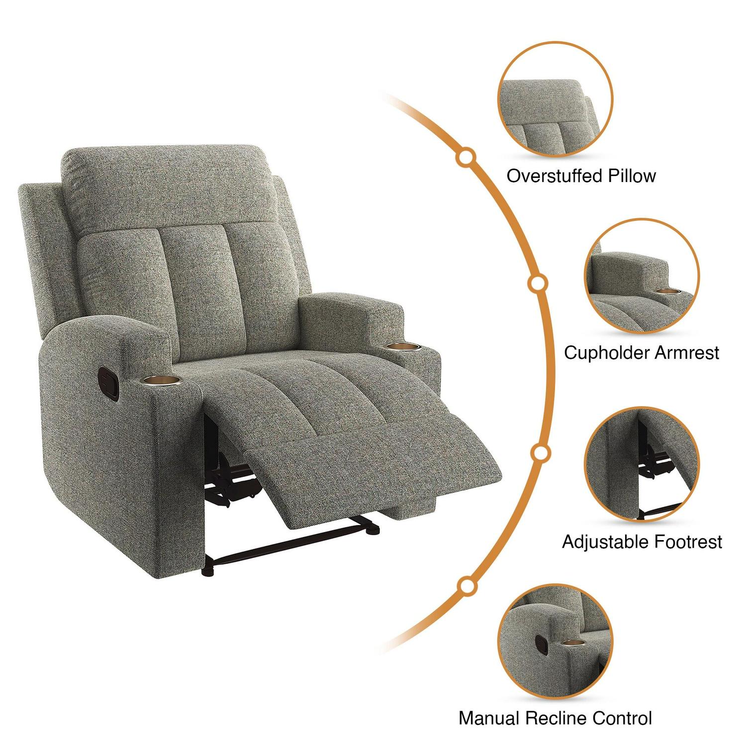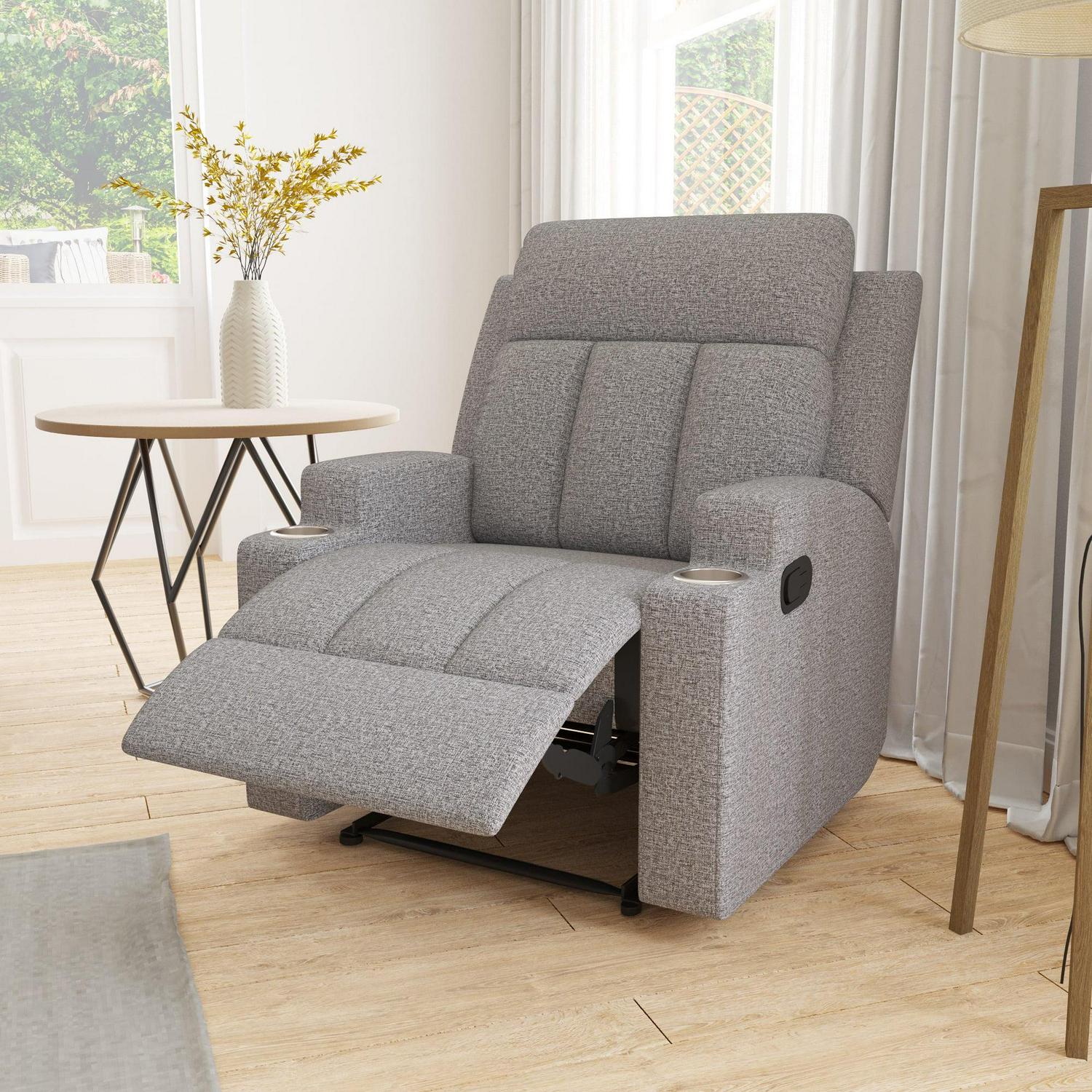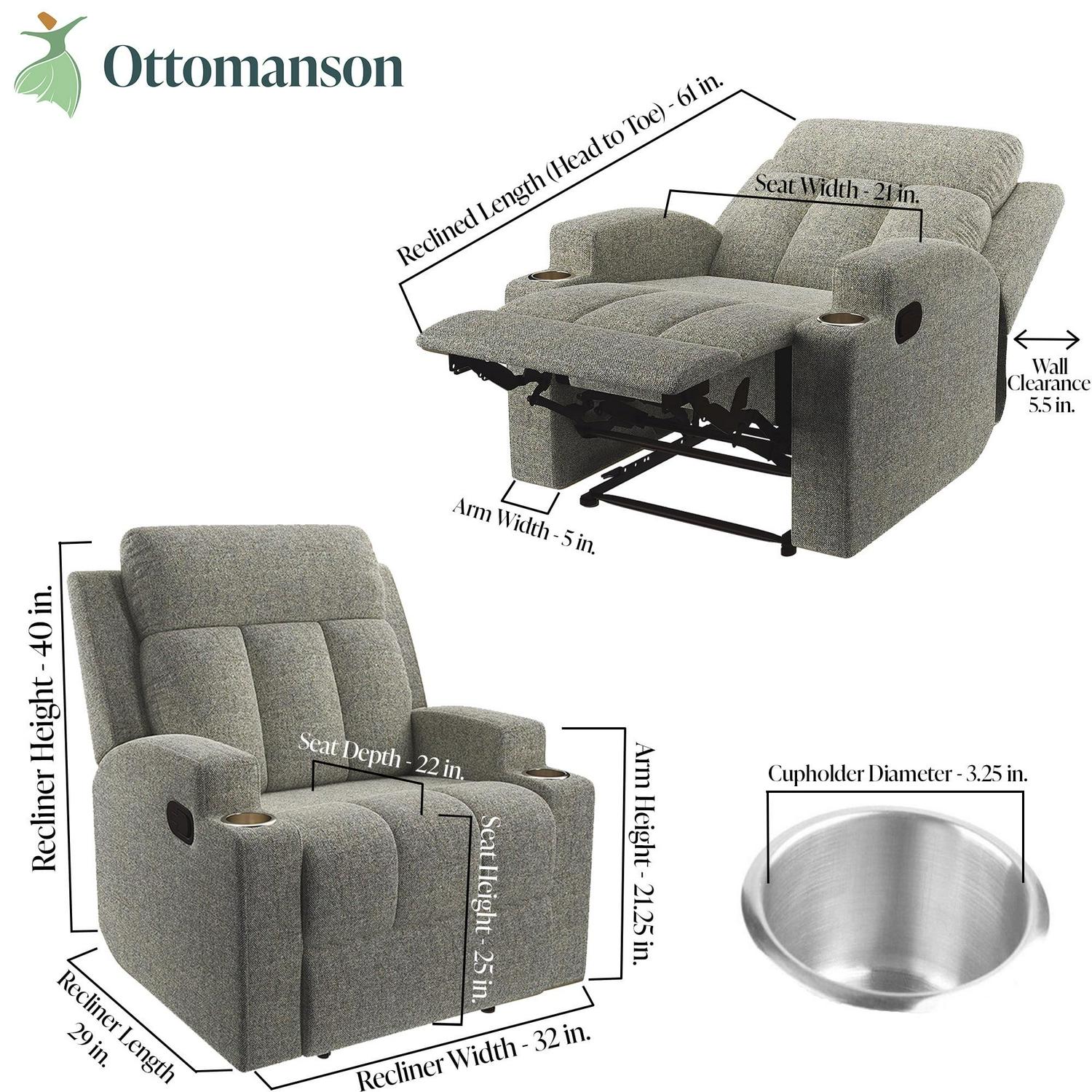 Ottomanson Prada Polyester Manual Recliner Chair with Cupholders and Footrest, Gray