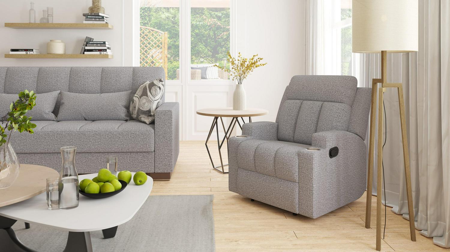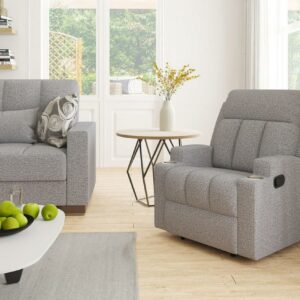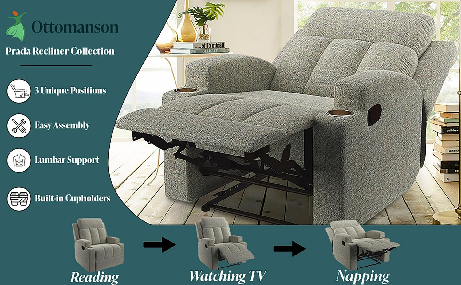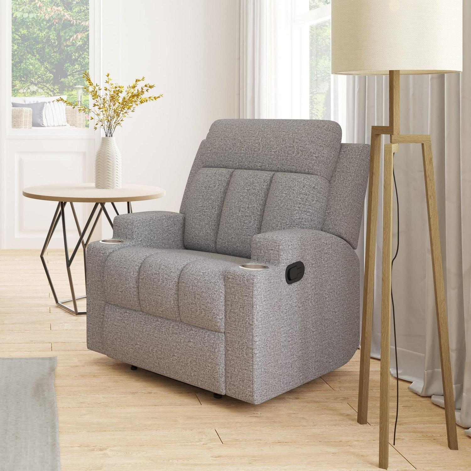 Ottomanson Prada Polyester Manual Recliner Chair with Cupholders and Footrest, Gray