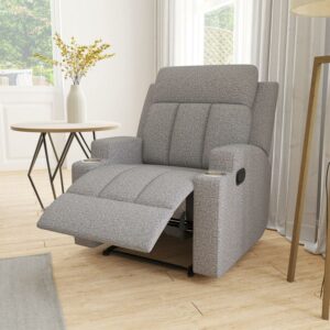 – Comfort: Our polyester gray recliner is designed to provide you with ultimate comfort and relaxation. The ergonomic design ensures maximum support for your lumbar and other key areas, while the footrest allows you to kick back and relax after a long day.
