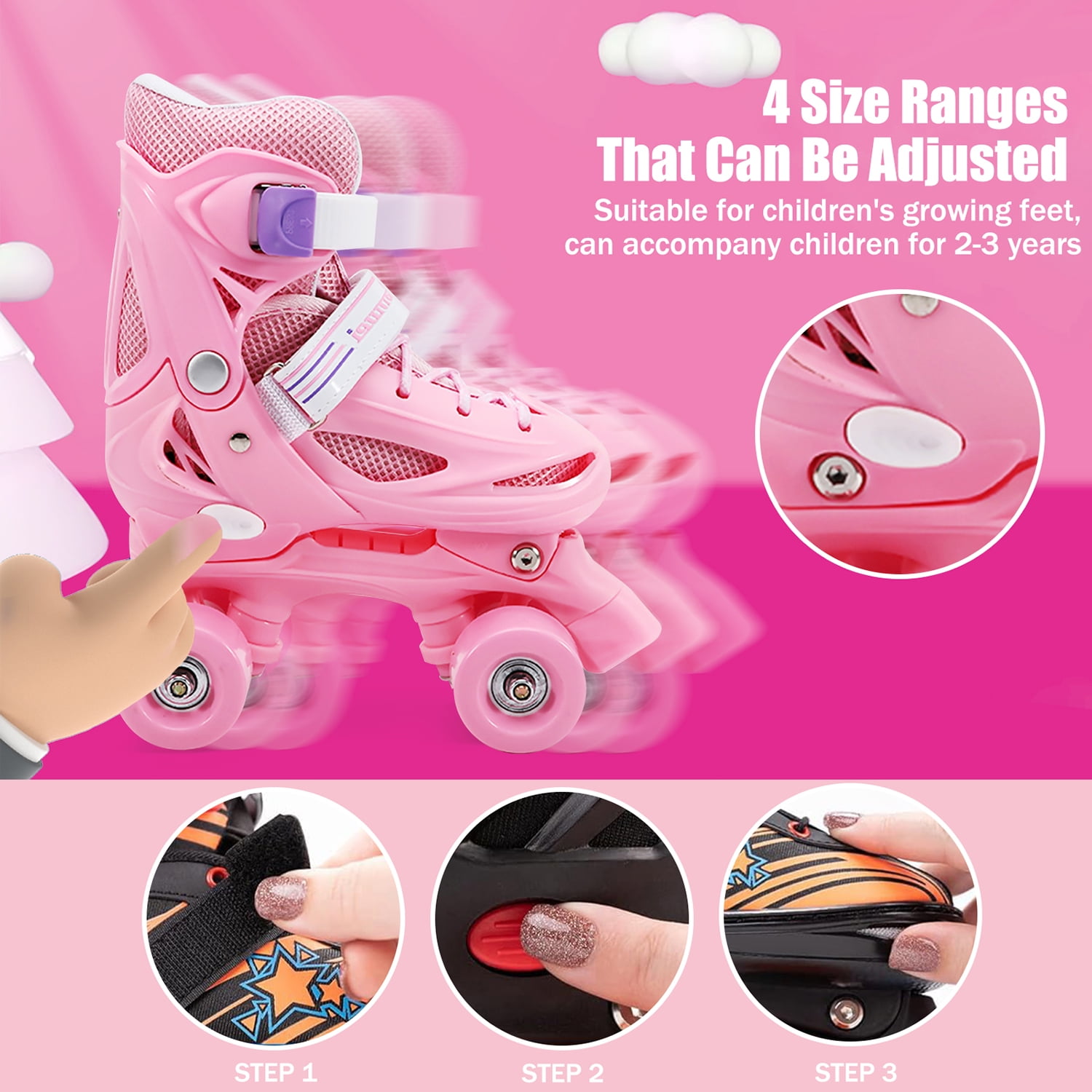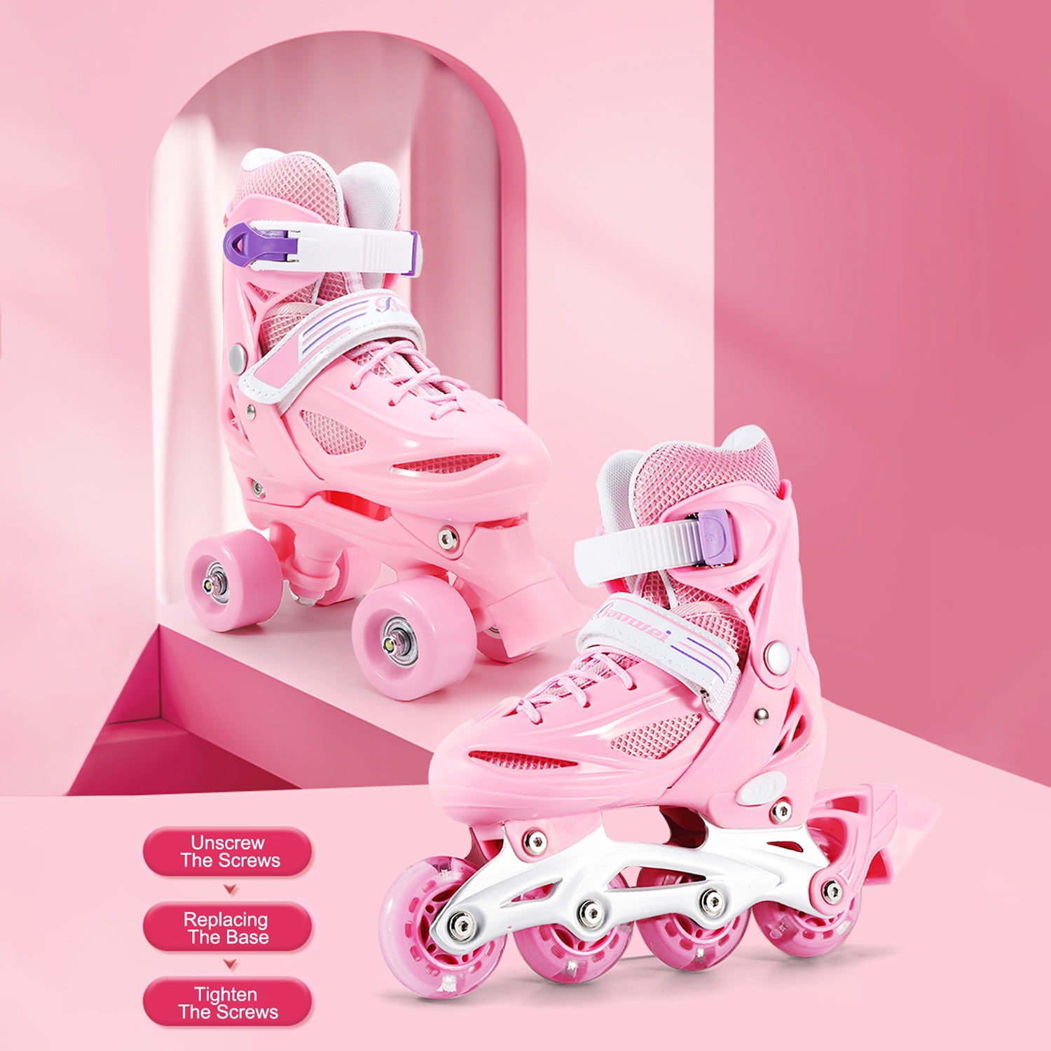 Otufan 2 in 1 Roller Skates Adjustable Kids Roller Skates Child’s Inline Skates and Classial Quad for Beginner Boys and Girls Aged 3 to 10 Years, Pink, S