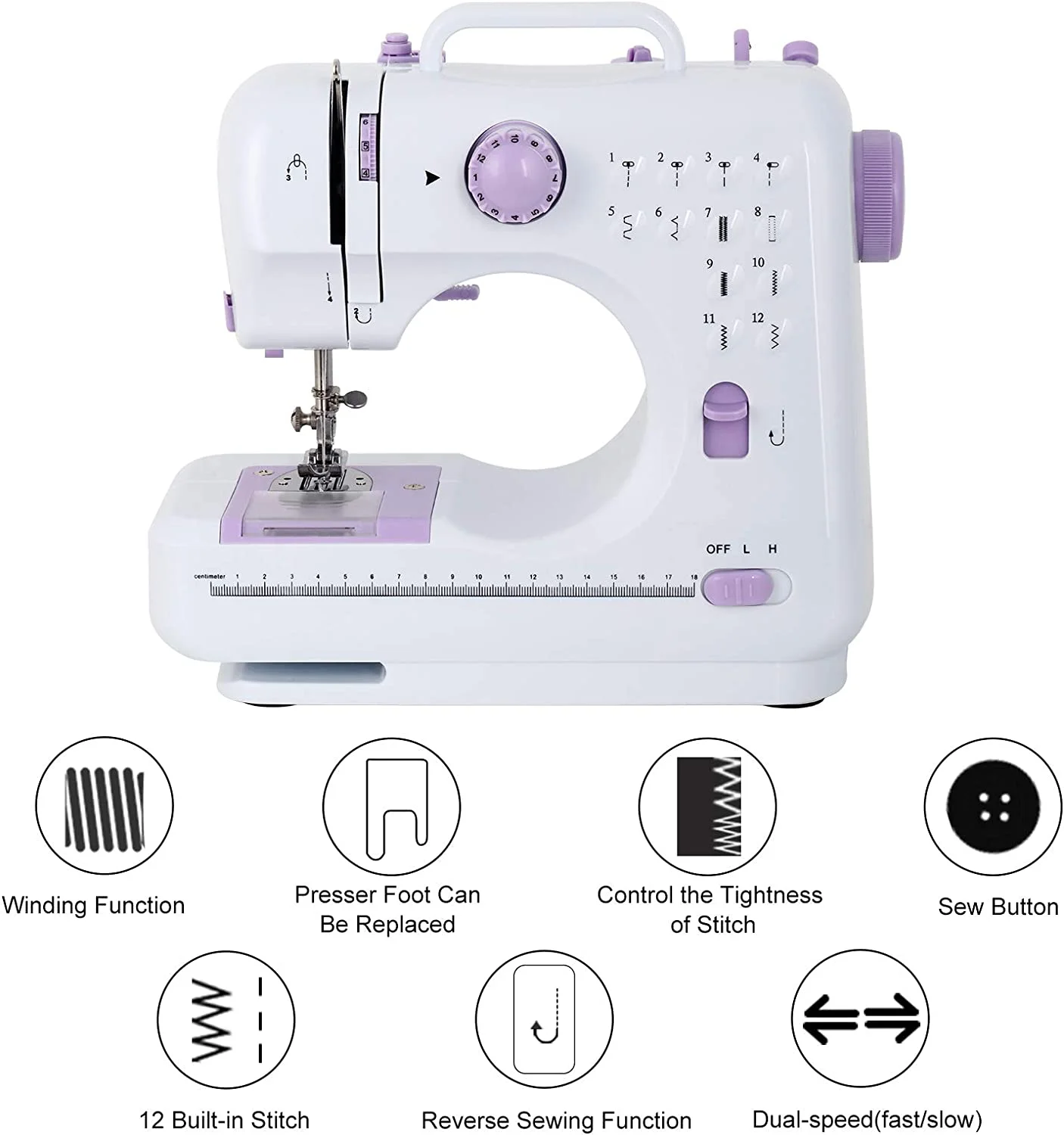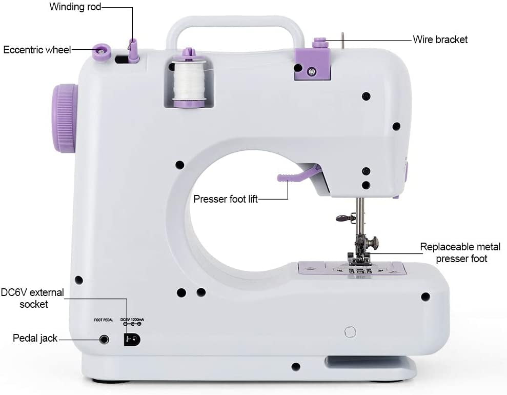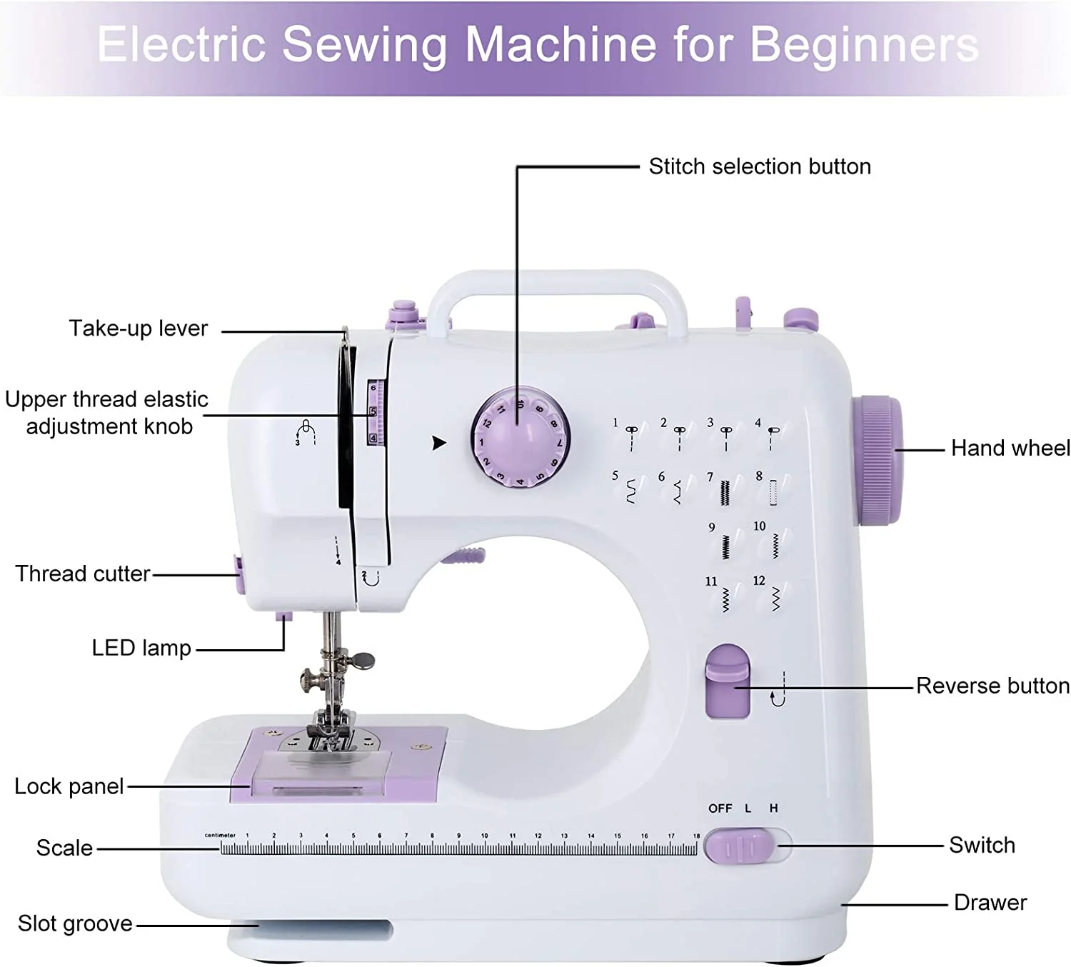 Automatic bobbin rewinding and two speeds selection. Portable size, perfect for beginners’ first use. The Adapter was authenticated by UL to make sure safety. Also, it supports the battery supply for outdoor use. Power supply and battery cannot be used at the same time, or it will cause the machine to not work. Come with a foot pedal. You can do your sewing with both hands and control the speed with the foot pedal. Multifunctional home sewing machine with 12 stitches patterns, perfect for many sewing projects and play your imagination. It is recommended to study the instructions in the package patiently before using it. Before children use it, they must have experienced adults to help them study it.