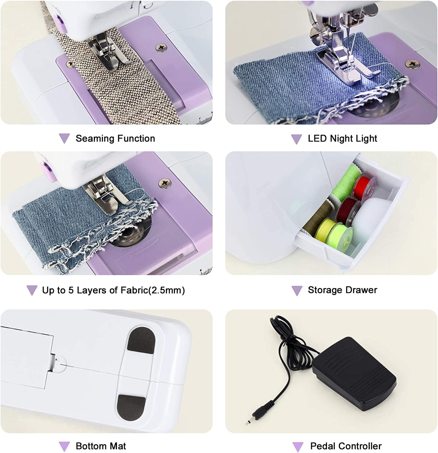 This sewing machine can go in reverse, no need to change the direction of cloth, easy to use. Come with led light bulb, as a supplement to work lights. Scissors make it easy to cut the thread. When you sewing, please control the tightness of the thread by adjusting the button. Bigger number, tighter upper thread.