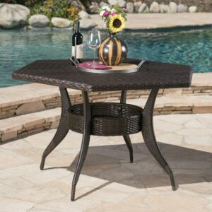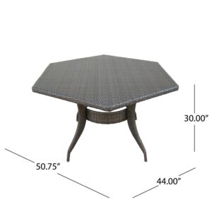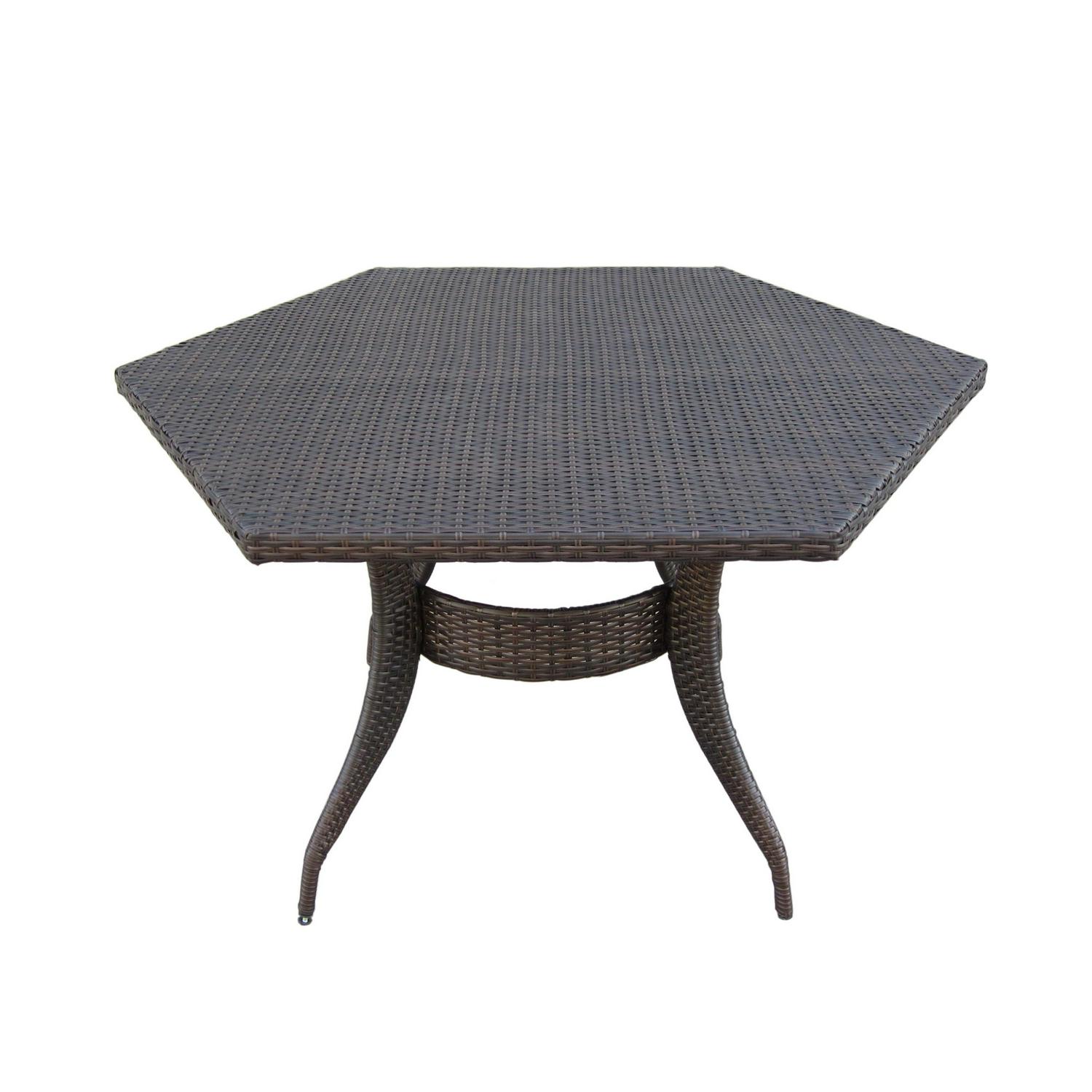 Outdoor 53-Inch Wicker Hexagon Dining Table, Multi Brown