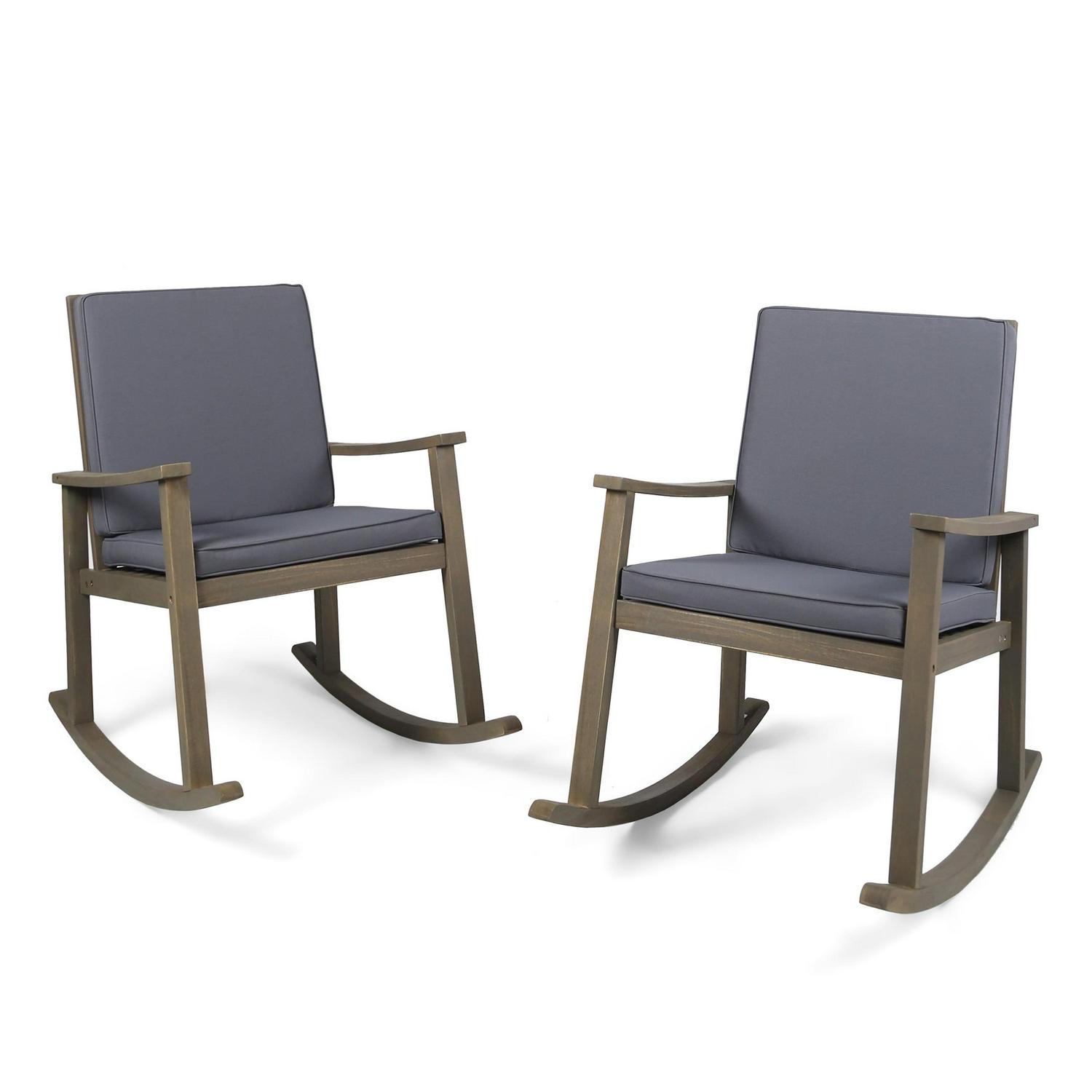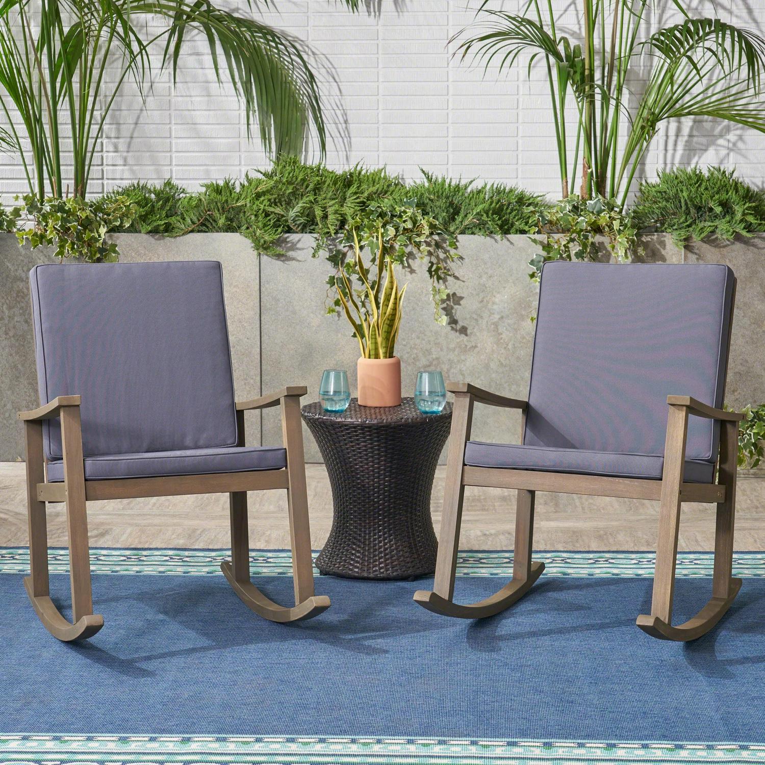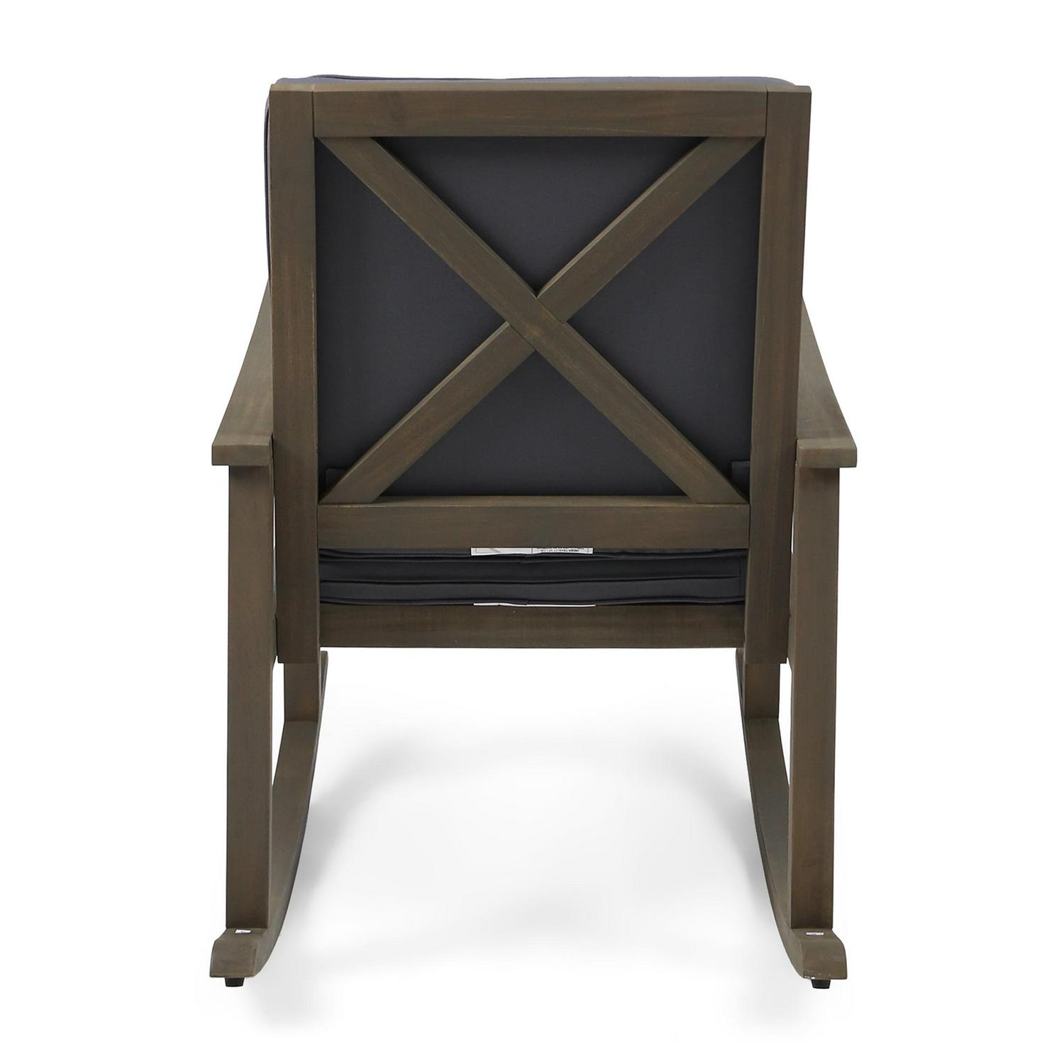 Outdoor Acacia Wood Rocking Chair with Cushion, Grey