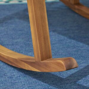 Outdoor Acacia Wood Rocking Chair with Cushion, Teak,Cream