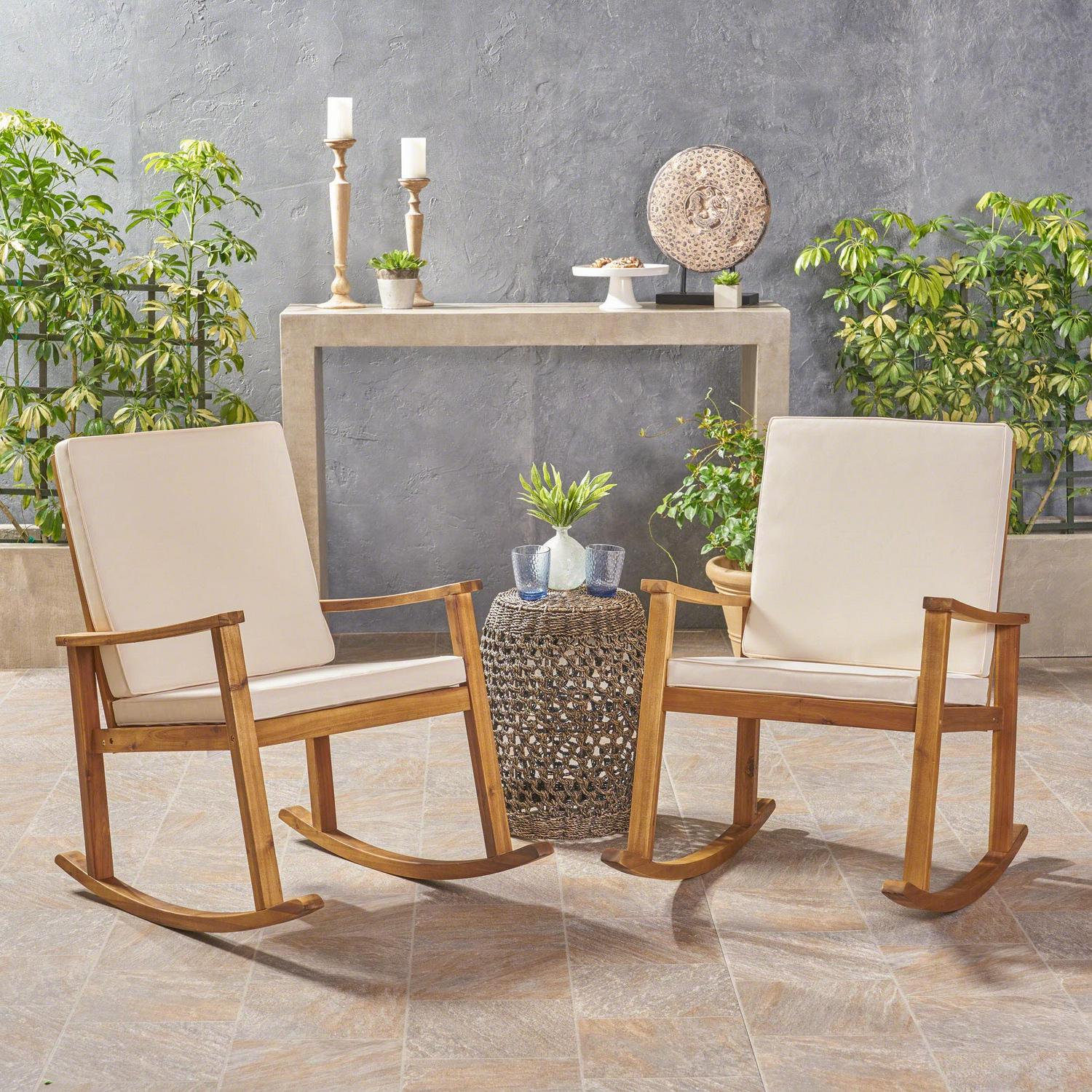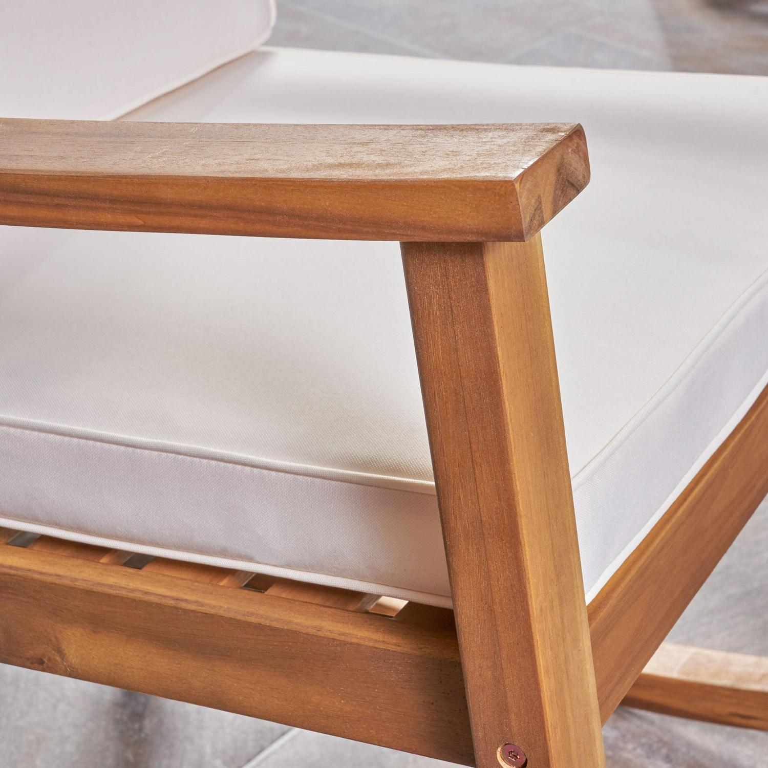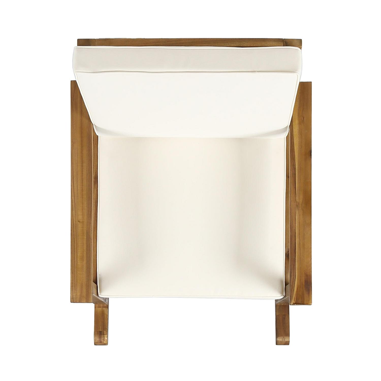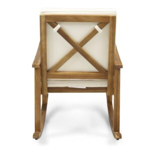 Outdoor Acacia Wood Rocking Chair with Cushions,Teak,Cream