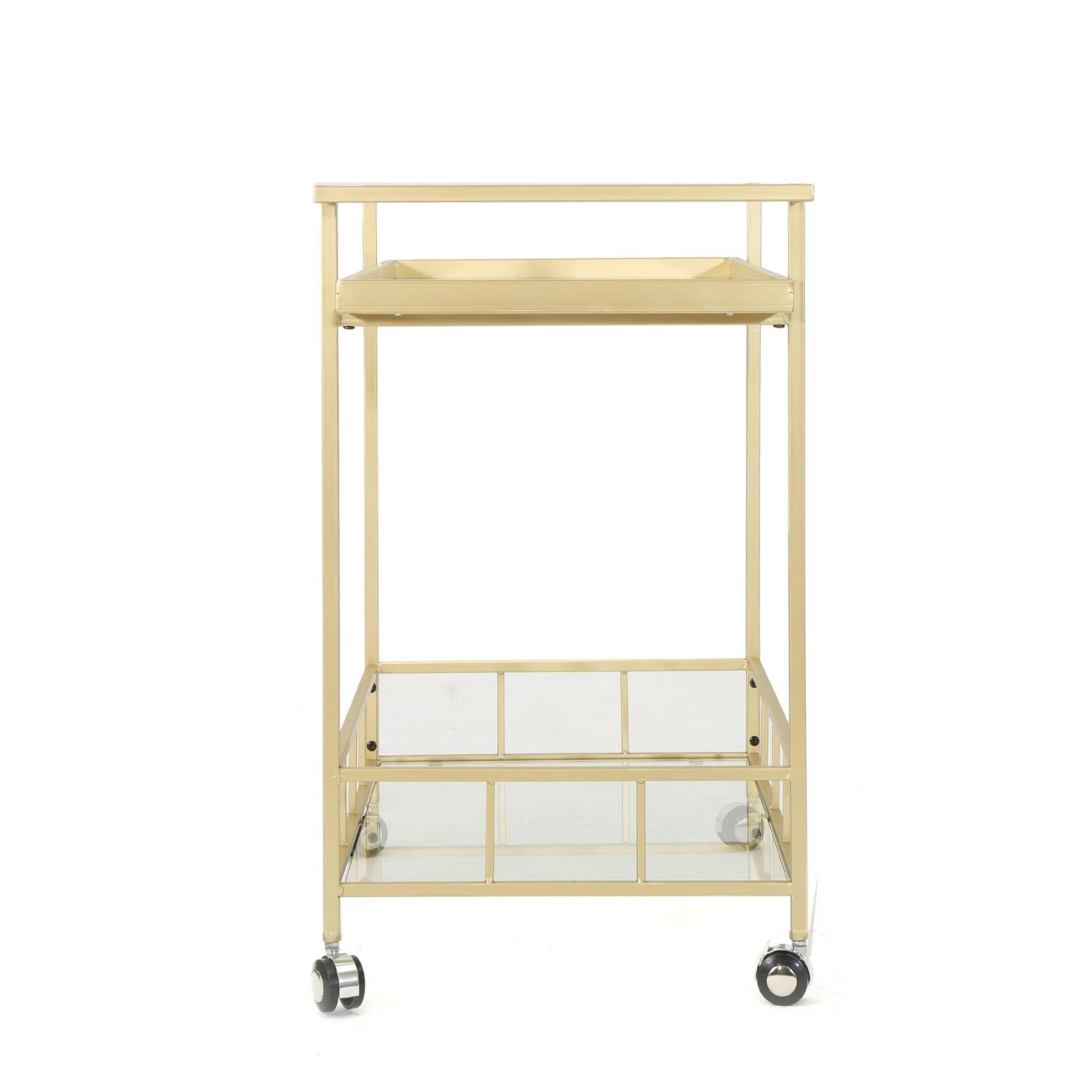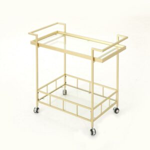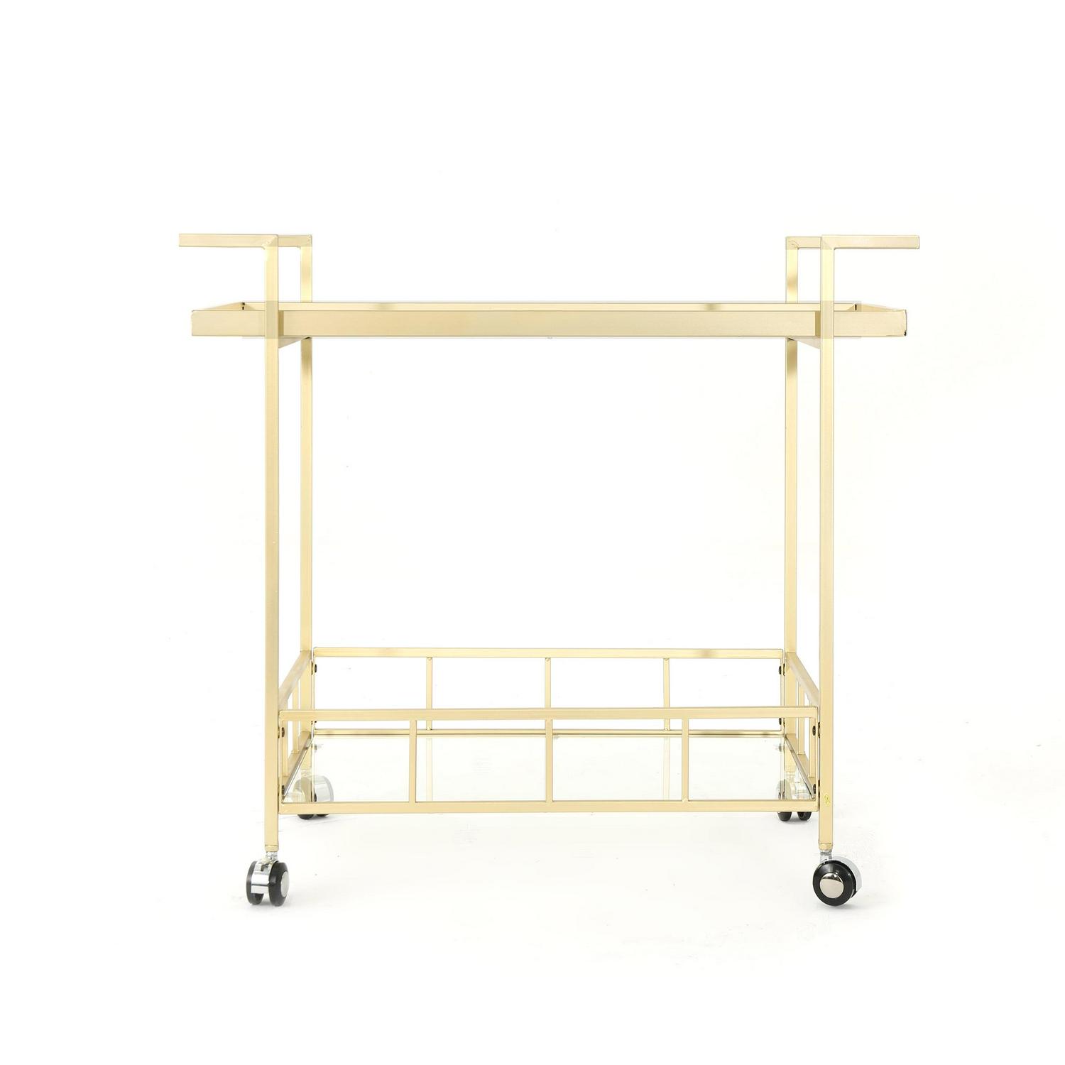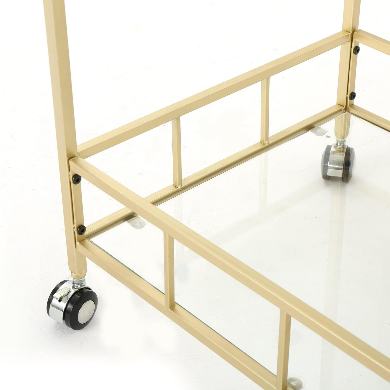 Outdoor Industrial Iron and Glass Bar Cart, Gold