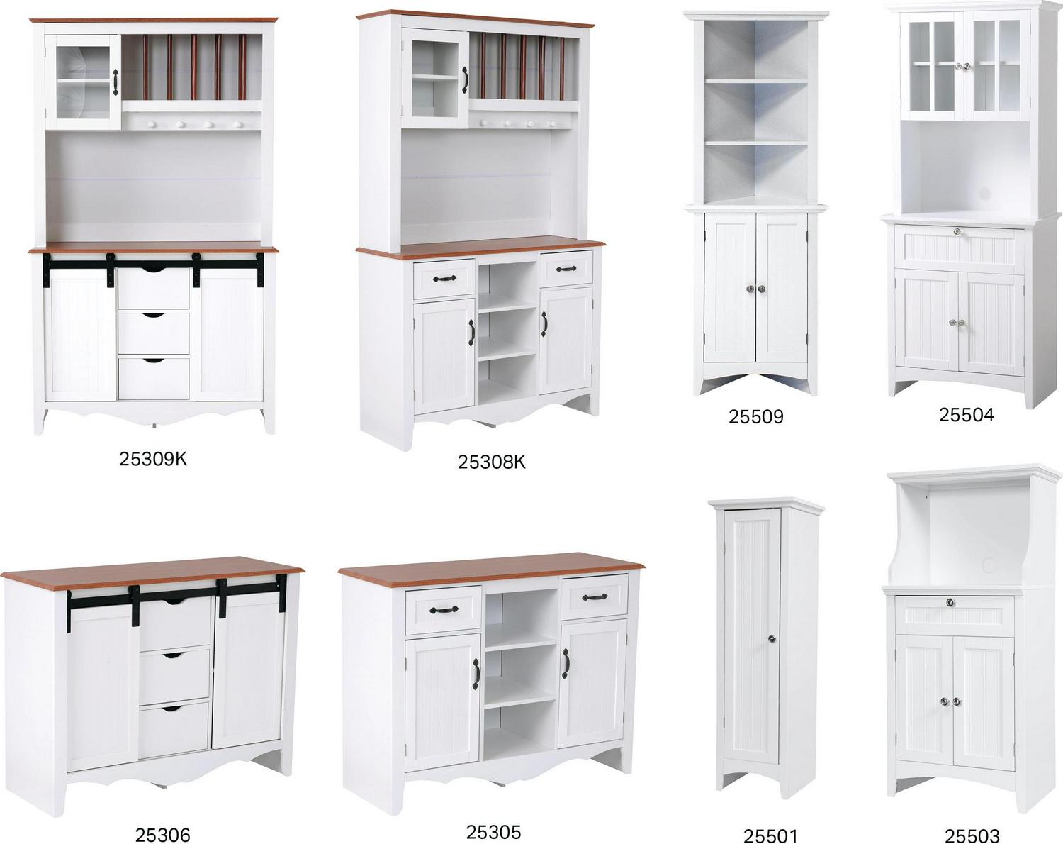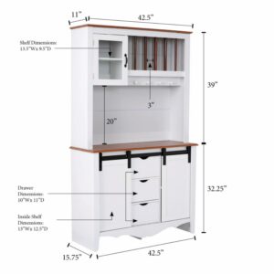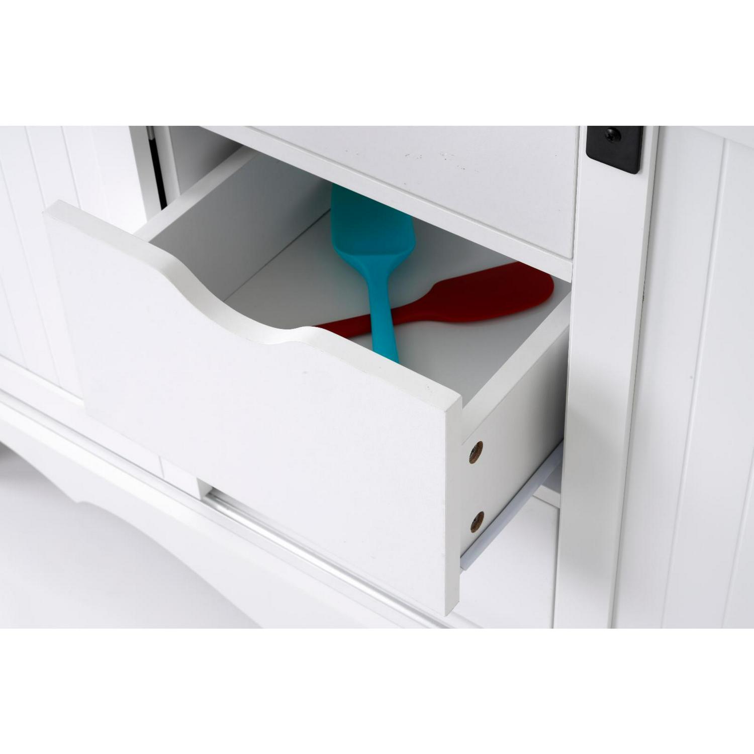Outdoor Leisure OS Home and Office Furniture Countryside Sliding Barn Door Buffet and Hutch, Crisp White with Warm Pine Tops