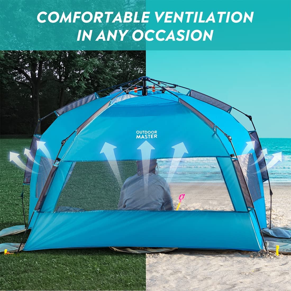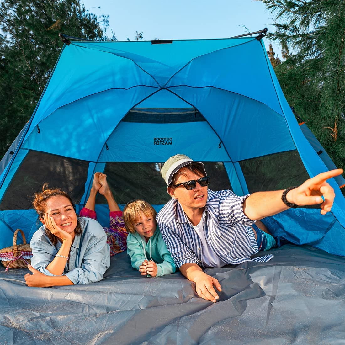 OutdoorMaster Pop Up Beach Tent for 4 Person – Easy Setup and Portable Beach Shade Sun Shelter Canopy with UPF 50+ UV Protection Removable Skylight Family Size – Blue