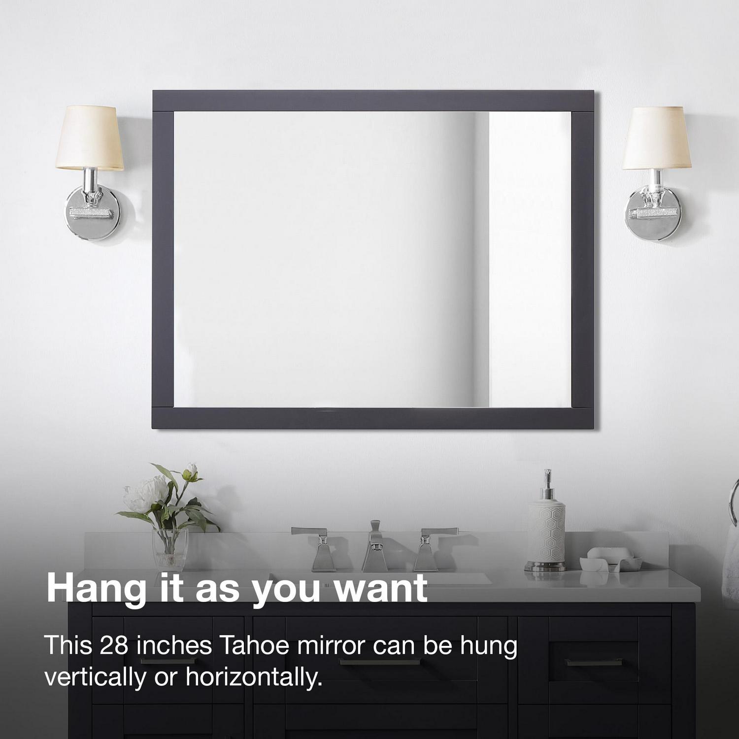 Make decorating and accessorizing simple and easy. The Tahoe 28-in x 36-in mirror is simple and classic and a great piece to help add character to your bathroom or any space in your house. The Tahoe rectangular mirror can be installed for vertical or horizontal application. The Tahoe mirror series is made of 100 % solid wood and is painted for durable long-lasting use. The Ove Decors Tahoe mirror is ideal for use in entryways, living rooms, bedrooms, or to complement the Tahoe series for bathroom vanities.