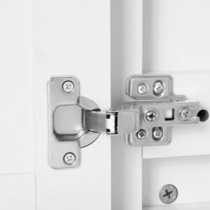 – Doors are slow-close with adjustable 3-way, 110-degree hinges. Adjustable interior shelf. The bottom open shelf is perfect for storage or displaying items.