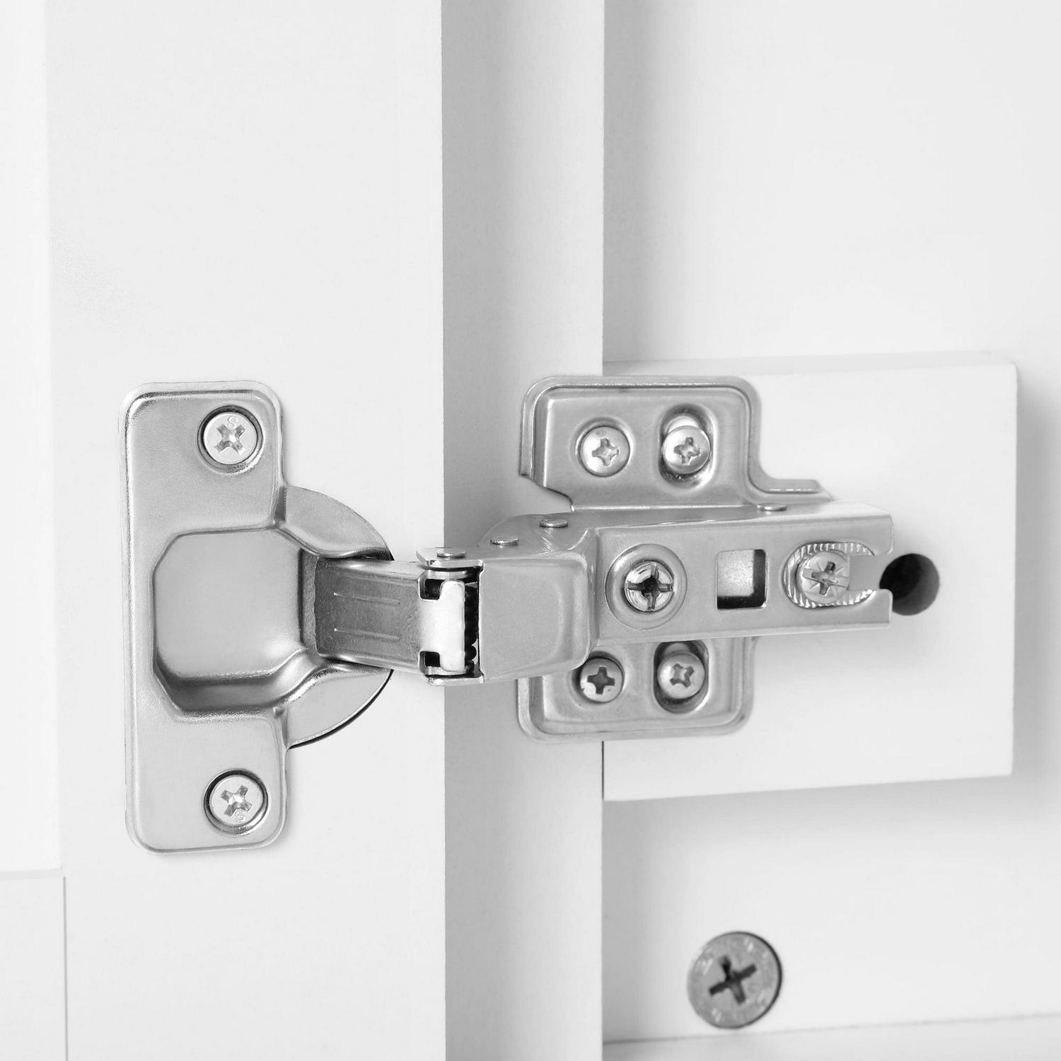 – Doors are slow-close with adjustable 3 way, 110 degree hinges. Adjustable interior shelf. Bottom open shelf perfect for storage or displaying items.