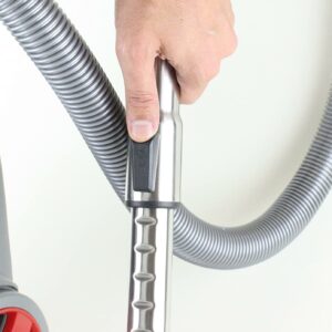 – Convenient – This vacuum comes with a step button to turn on/off, an automatic cable rewinder, 360° hose swivel, and a telescopic wand that will help you get to hard-to-reach areas.