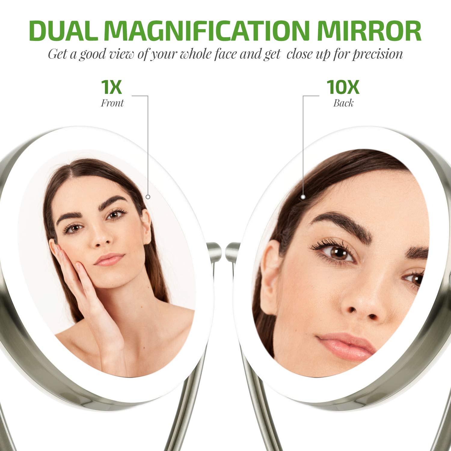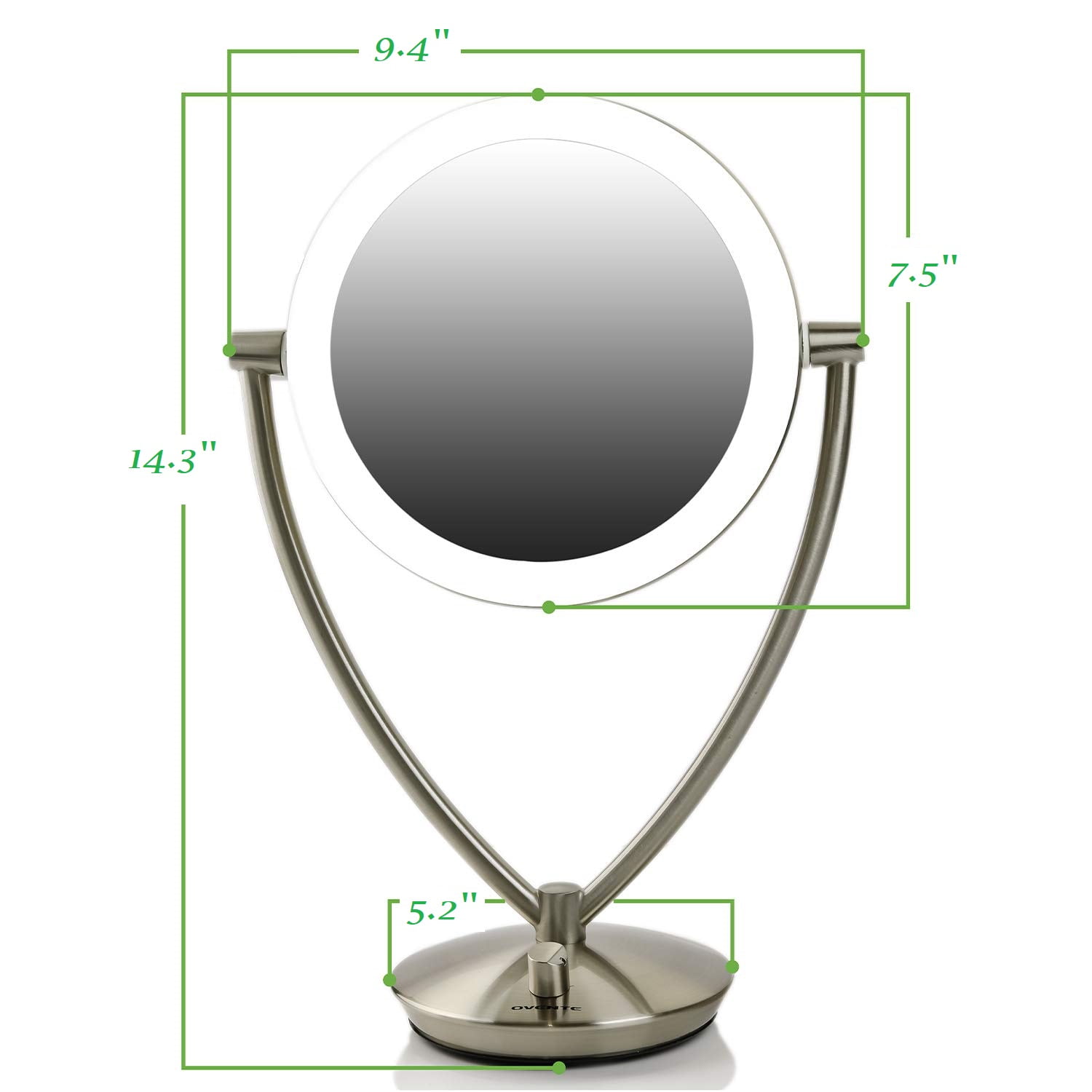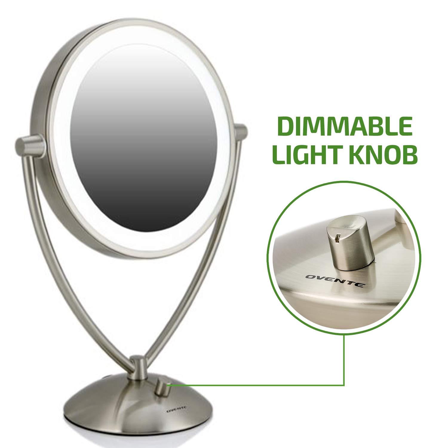 Ovente LED Lighted Makeup Mirror 7.5 Inch Table Top 1X 10X Magnifier Dimmable, MLT75BR1X10X