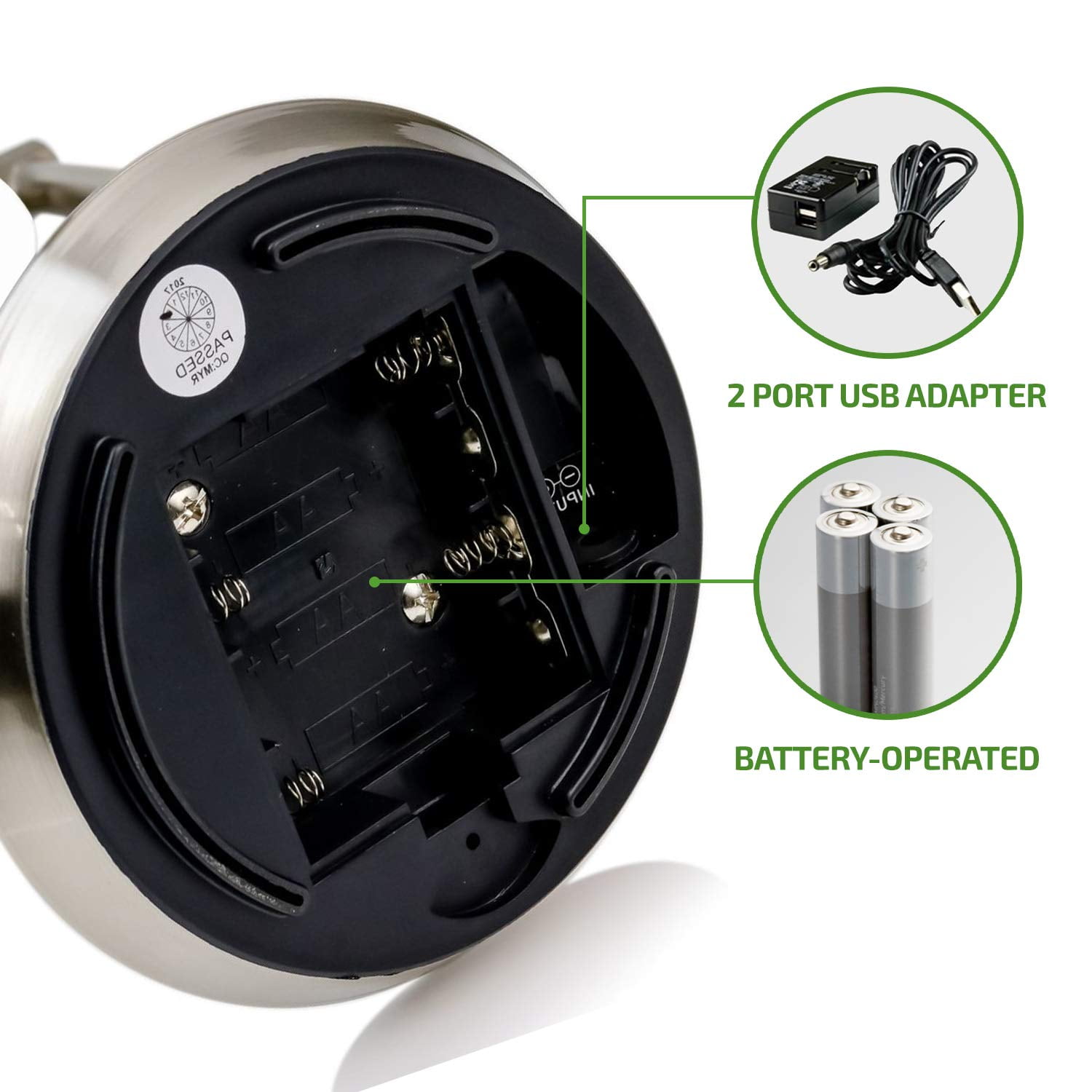 This cute adjustable makeup vanity with light mirror can be great for many décor, including vintage, Victorian, Hollywood, medical, or anything that involves beauty and self-care. This bathroom mirror with LED light is a classy addition for bathroom, bedroom, grooming, shaving and vanity needs. This countertop vanity makeup mirror gives a chic modern look for any master bath, hotel, dental, and shower needs. It is operated by 4 AA batteries (not included) or a 2 Port USB adapter (included). The 2-Port USB adapter even allows you to charge your phone while using the mirror. This magnified electric lit looking glass allows you to see up close so you can absolutely see your eyebrow and facial hair, much more clearly. Use it at home or as a portable option for any traveling, big or small. It is sure to bring an influx of positive high end energy to any room for everyone, including girls, boys and kids. Its ability to magnify, show off your accessories and continue a salon & spa experience at home makes this a consumer preferred product. Ovente’s MLT45 & MLT75 Series Table Top Cosmetic Mirror are available in: 2 Deluxe Finishes: Nickel Brushed and Polished Chrome 2 Size Offers: 7.5 and 9.5 inch 2 Magnification Offers: 1x5x and 1x10x