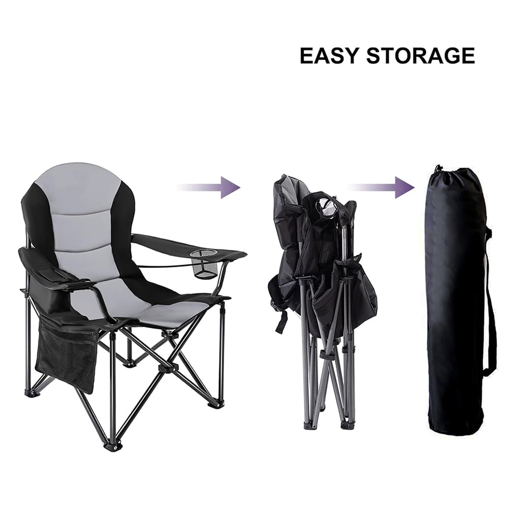Oversized Camping Outdoor Heavy Duty Chair Support 400 LBS Carry Bag Included, Heavy People Padded Folding Camp Chairs with Lumbar Support, Cooler Bag, Mesh Cup Holder, Pocket for Lawn,Sport