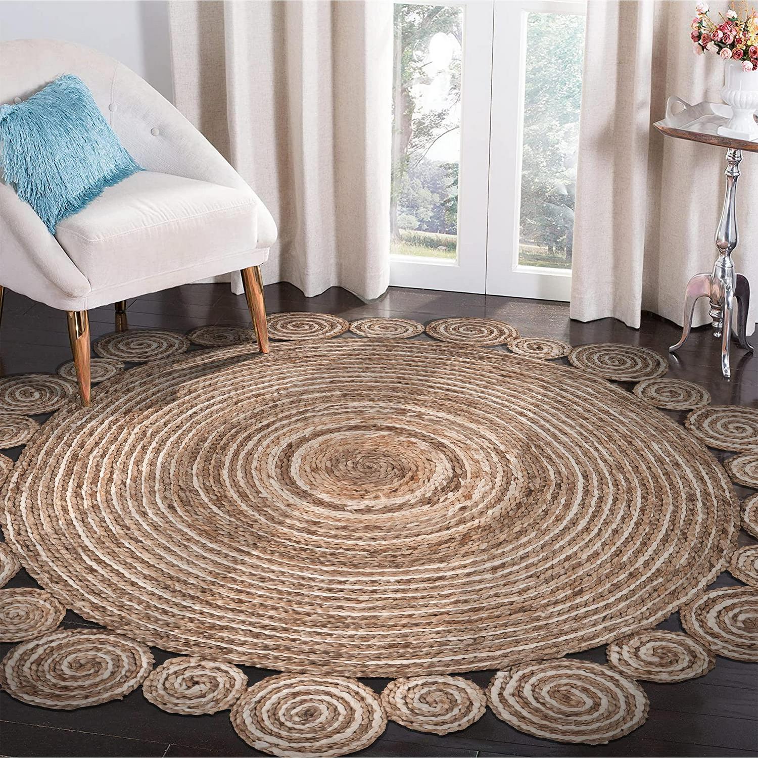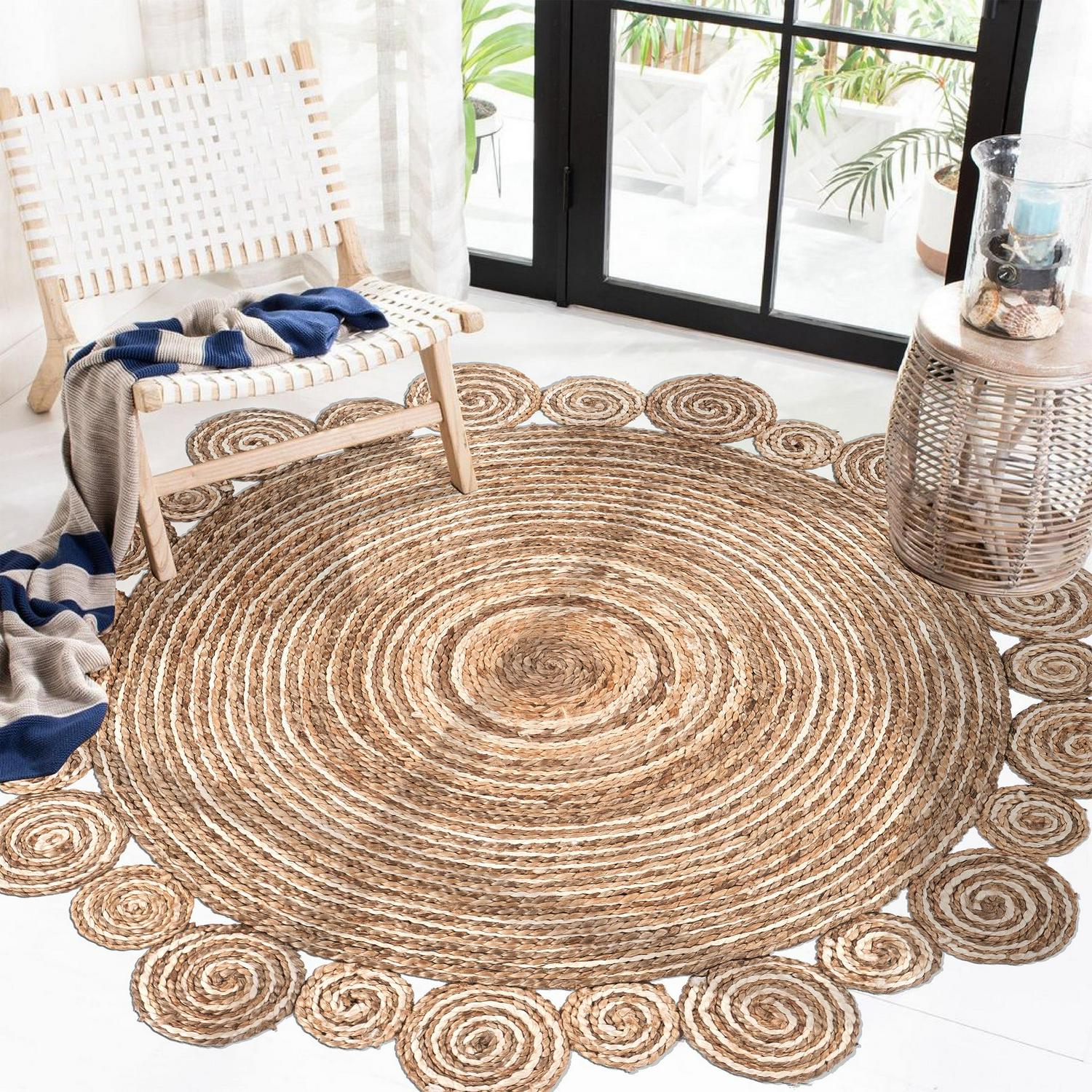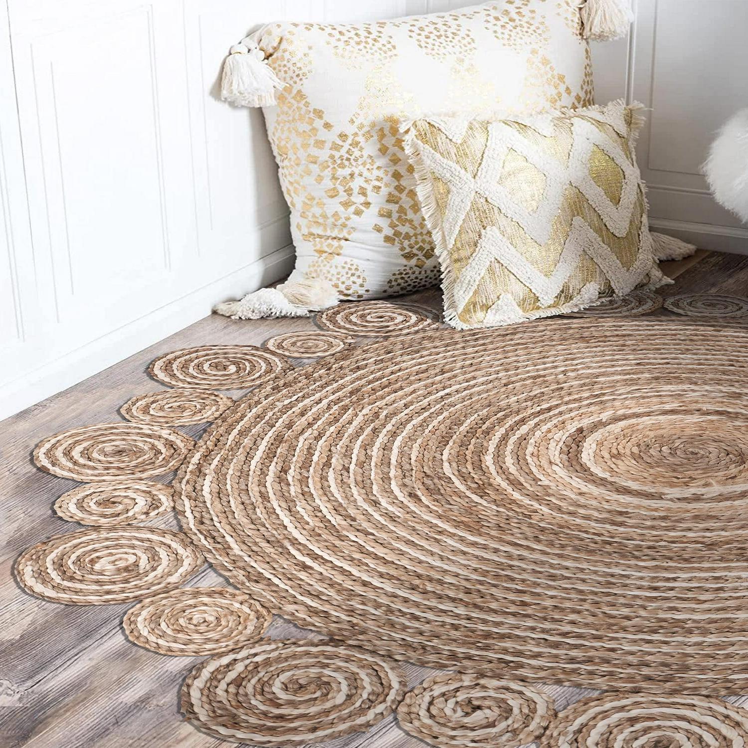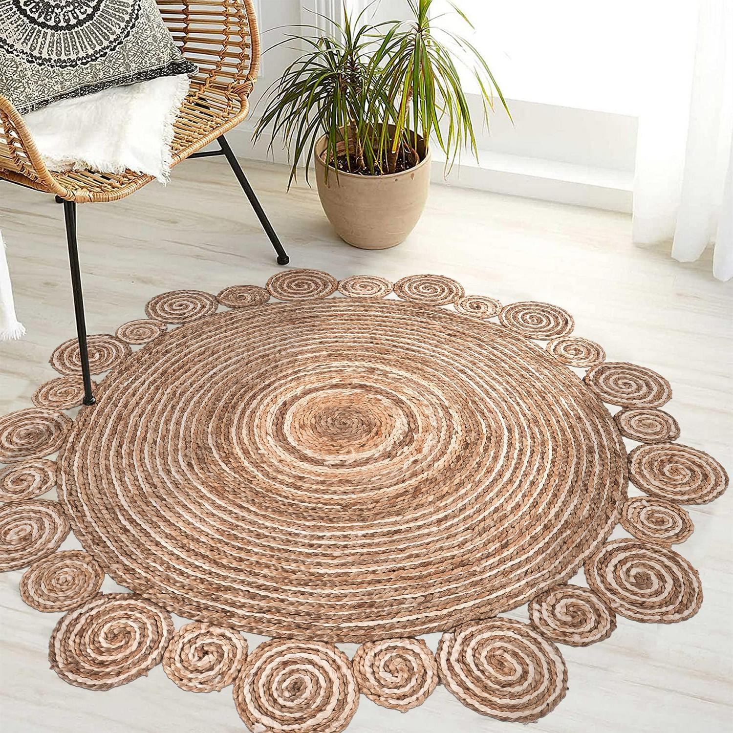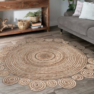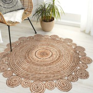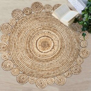 – Ox Bay Bleach Natural Medallion Spiral Boutique Jute Area Rug, Beige, 4 ft.