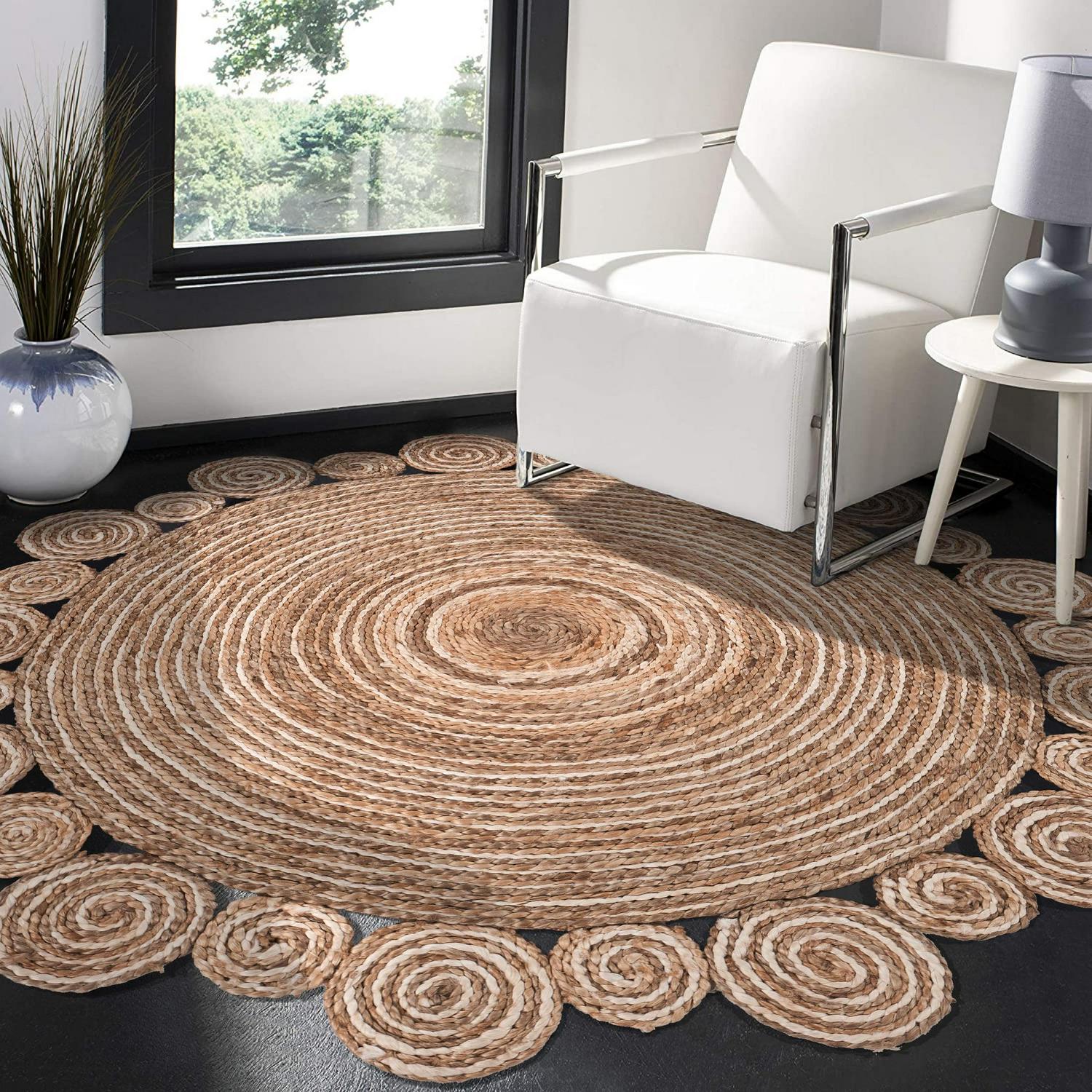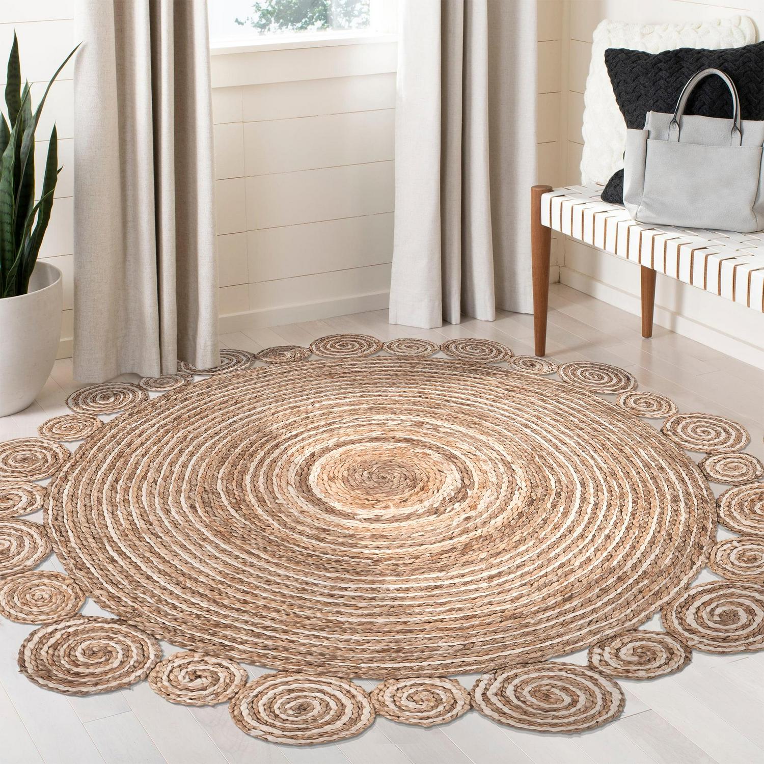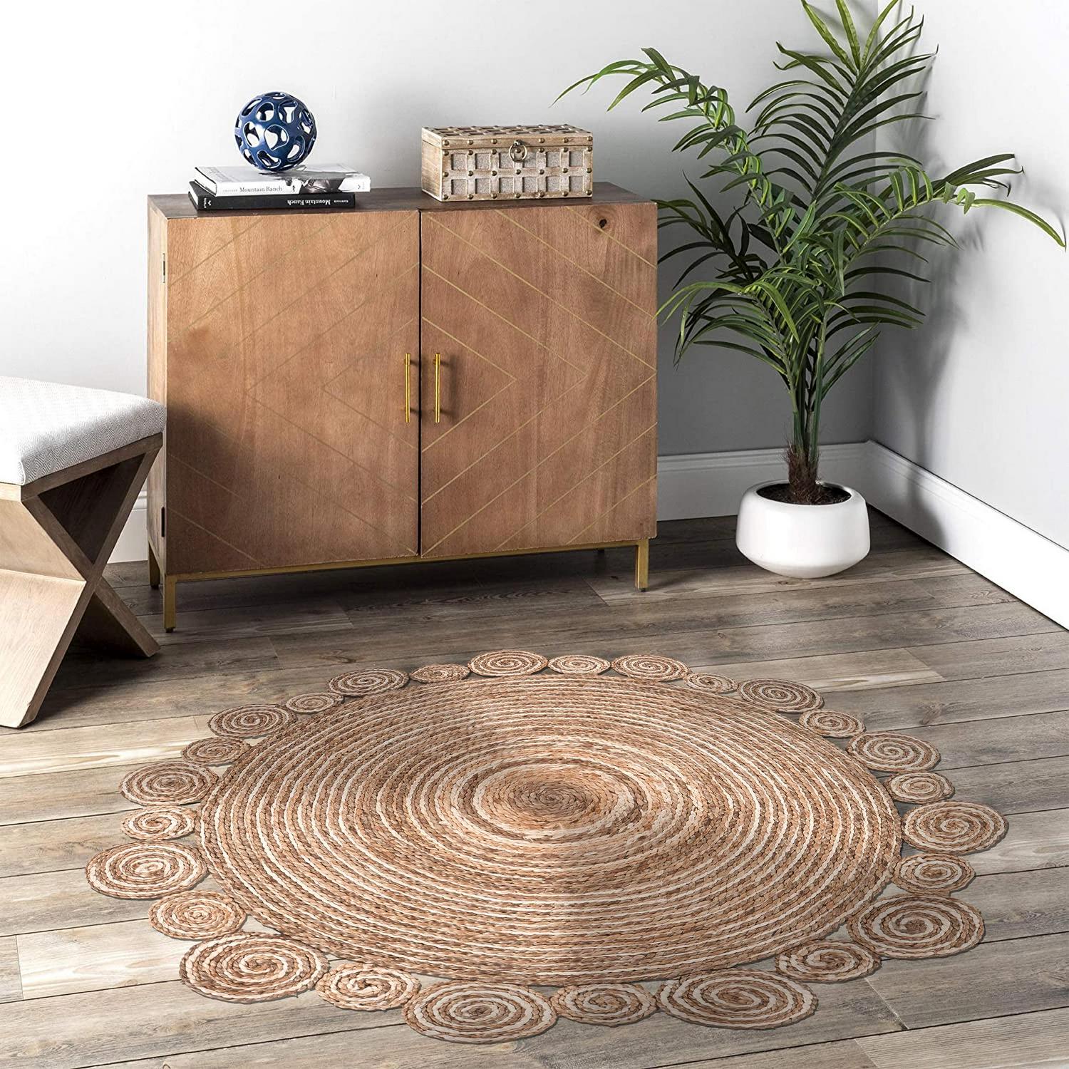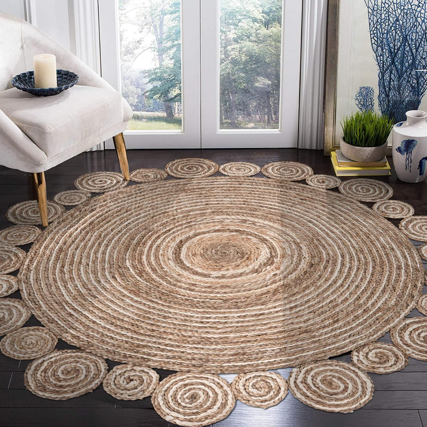 – Ox Bay Bleach Natural Medallion Spiral Boutique Jute Area Rug, Beige, 4 ft.