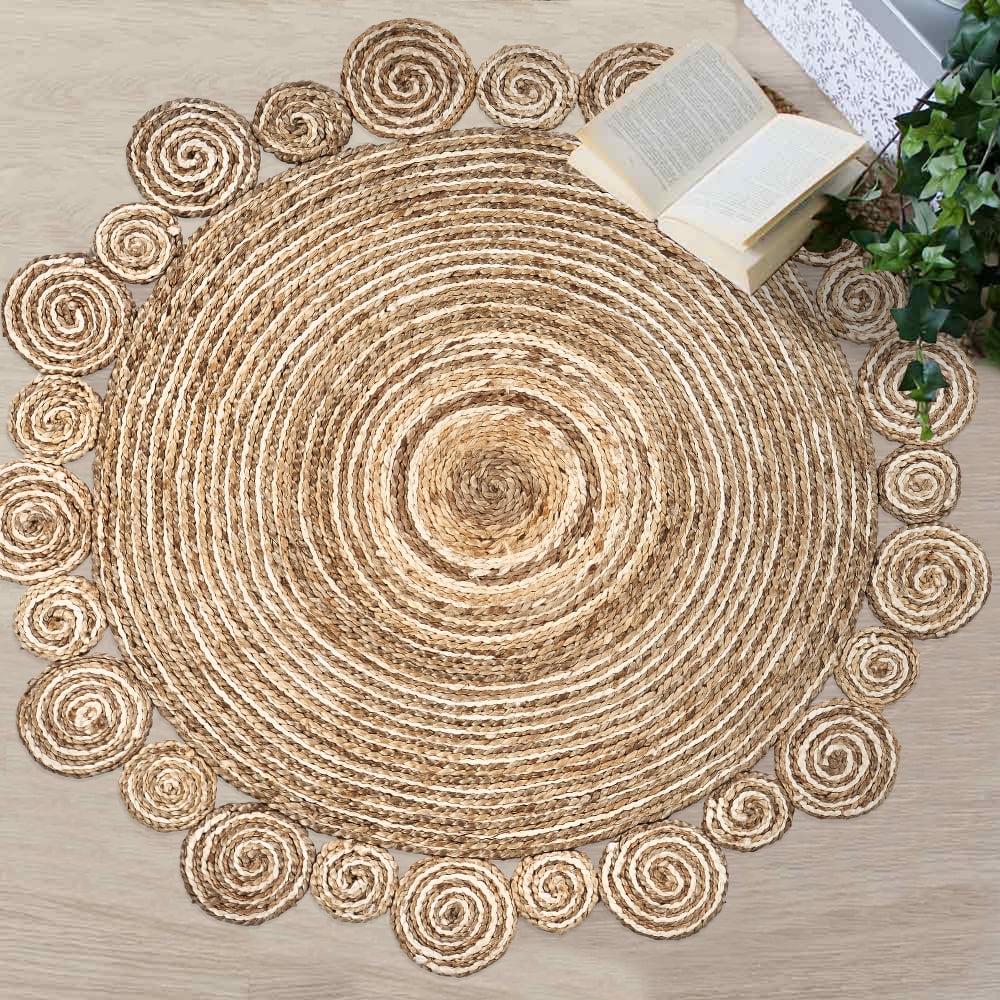 - Ox Bay Bleach Natural Medallion Spiral Boutique Jute Area Rug, Beige, 4 ft