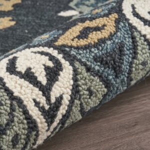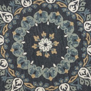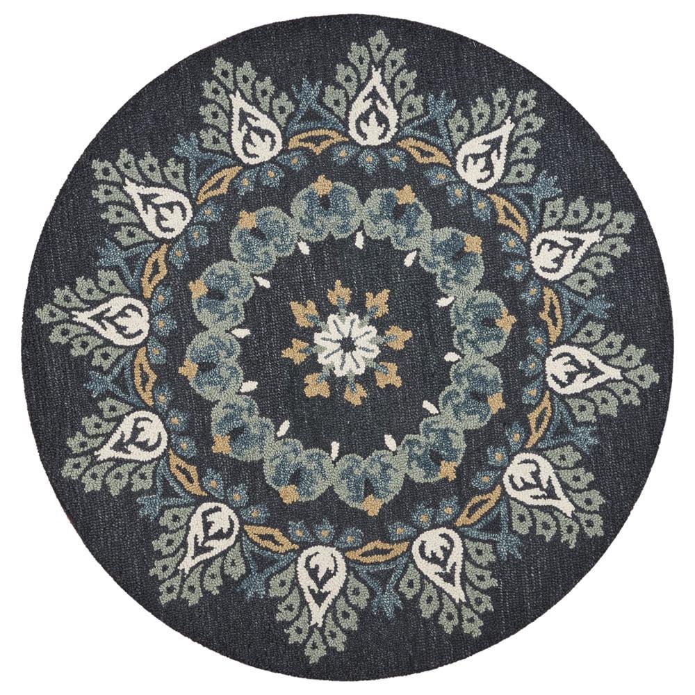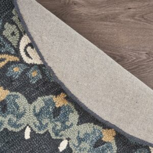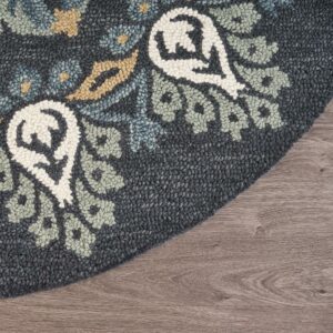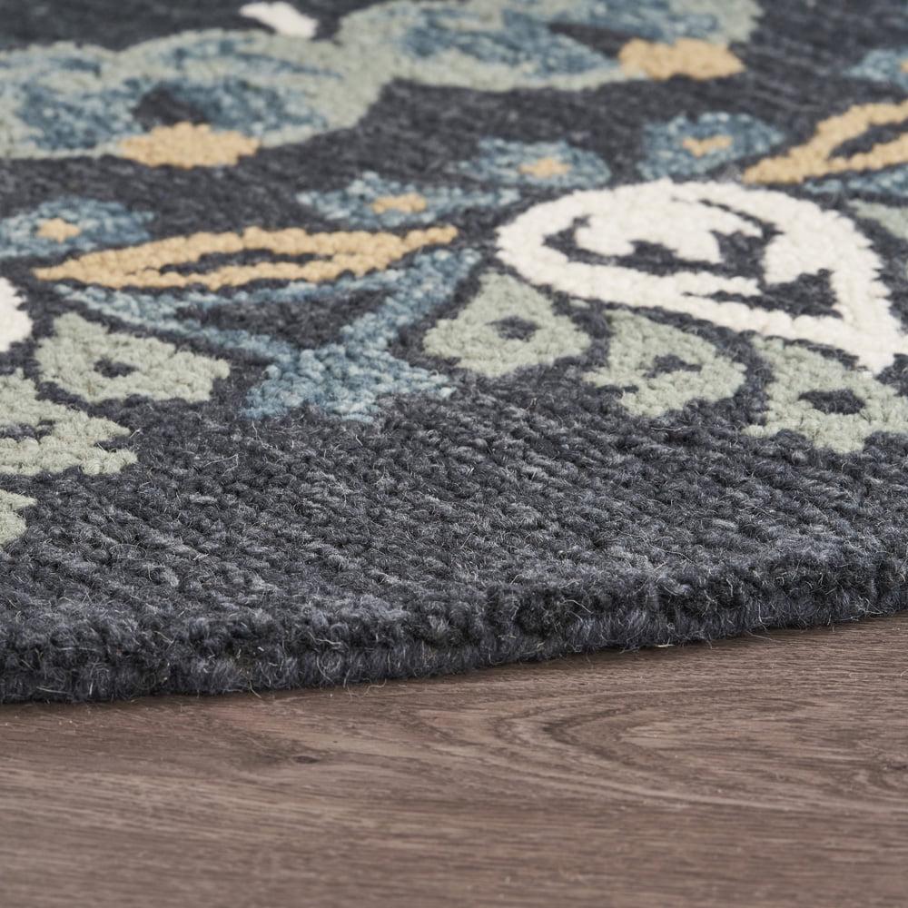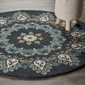 Ox Bay Hand Tufted Floral Pine Cone Charcoal Gray Teal Wool Indoor 4 Feet Round Rug
