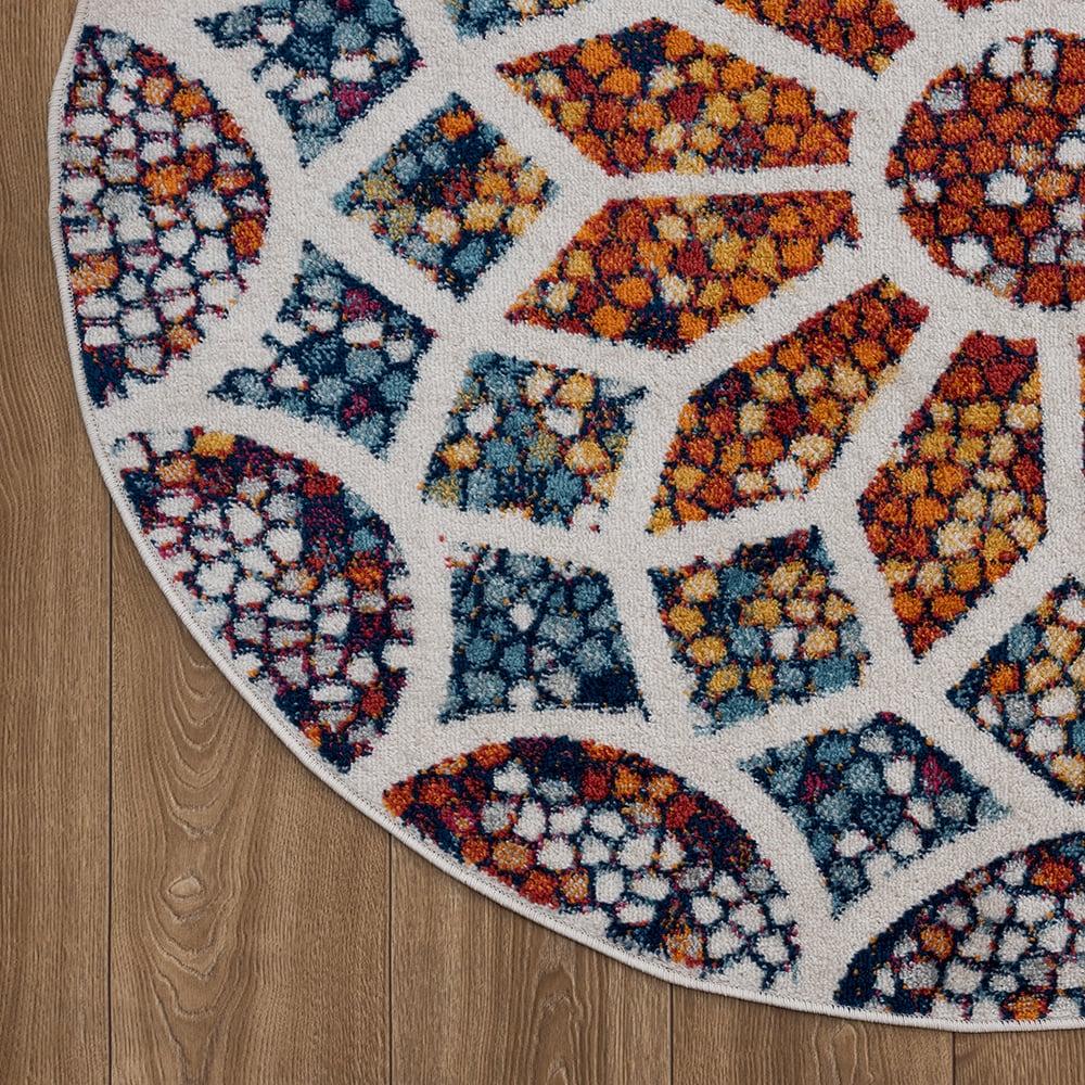Ox Bay Kismat Ivory / Multi-color 6 ft. 7 in. Mosaic Flower Area Rug