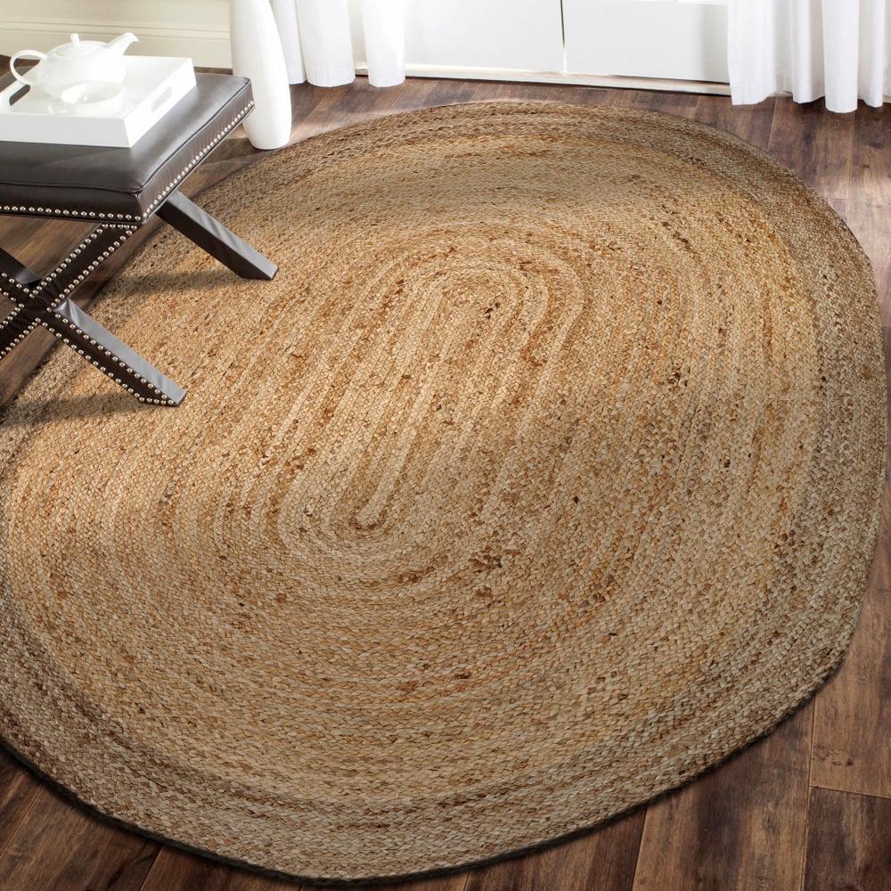 Ox Bay Natural Jute Hand Braided Rotunda Natural/Gray Jute Oval Indoor Area Rug : This jute rug is perfect to fit under a round dining room table or coffee table. Use it as an accent rug on a dark wood floor. The beautiful, natural color gives any room a casual feel with classic and understated style. Enjoy how soft it feels on your bare feet. Add this pretty jute rug to any area where you want to create an emphasis on natural elements in your space. The rug features a neutral color that blends nicely with nearly any decor or color scheme, so you can easily add softness and style underfoot without drawing attention from other focal points. Braided jute construction that exhibits naturally anti-static, insulating and moisture regulating properties.