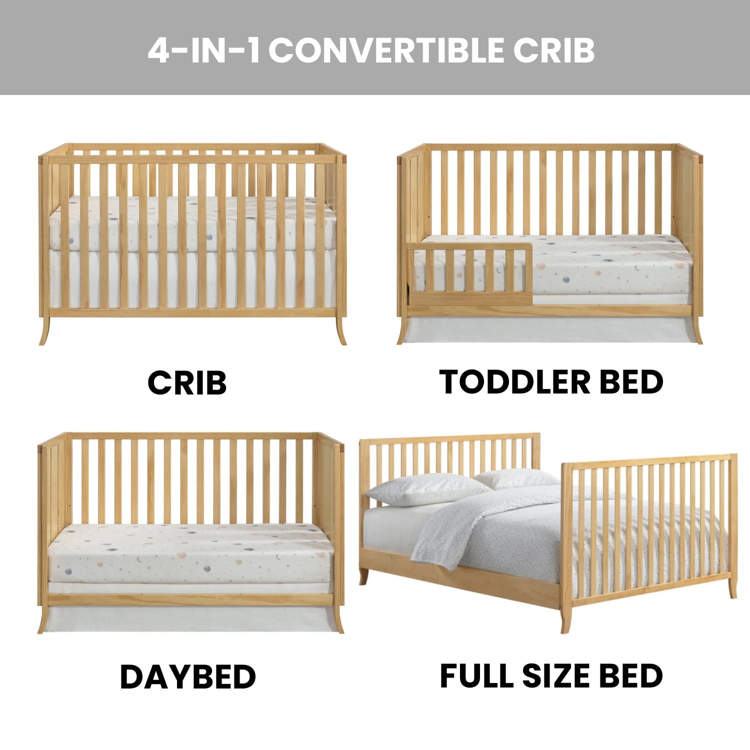 With its simple design, the Greenguard Gold Certified Oxford Baby Arlie 4 in 1 Island Crib adds a unique touch to your nursery. The Arlie crib features curved feet, and wide slats. As a great value add, this crib converts to a toddler bed, day bed and a full- size bed making it last a lifetime.