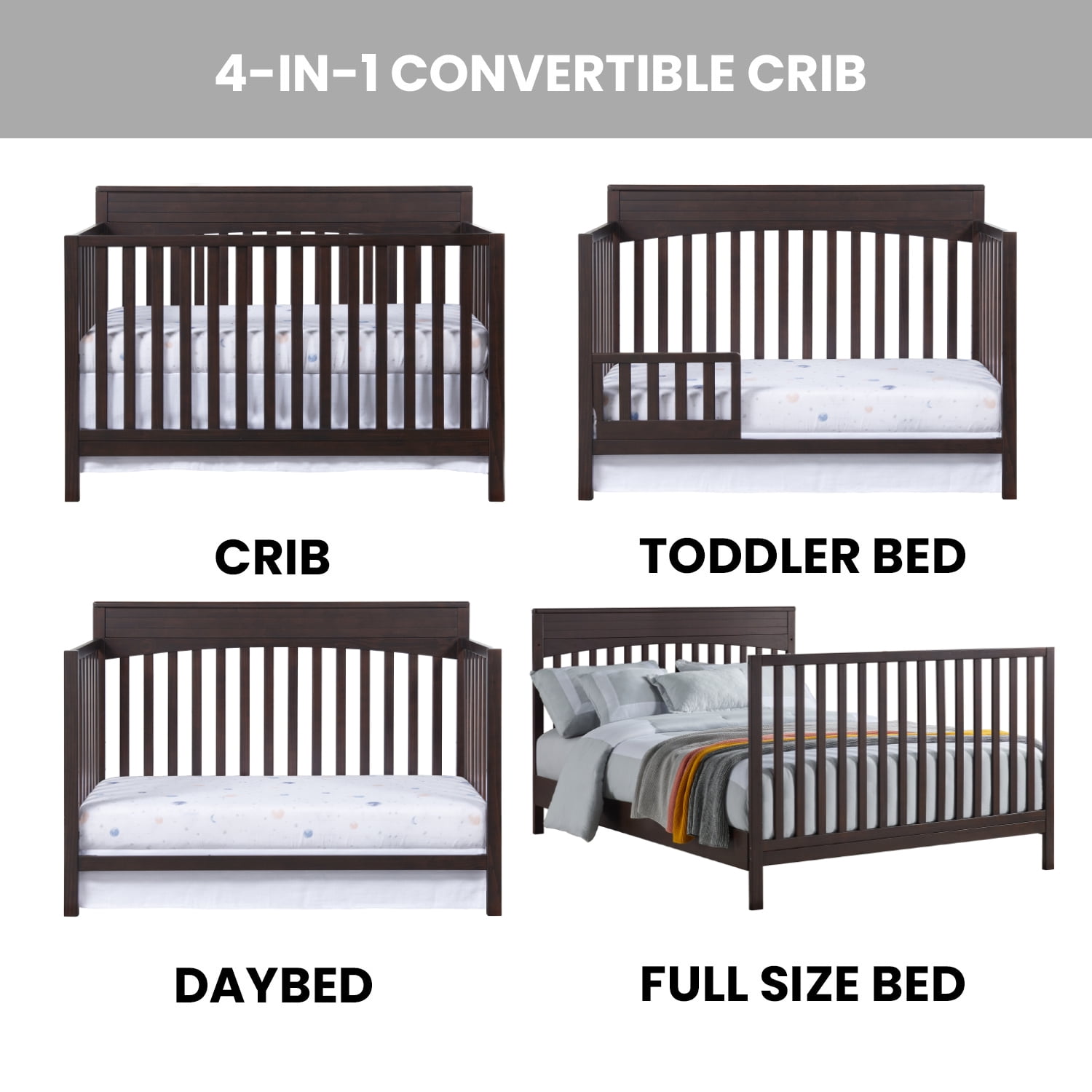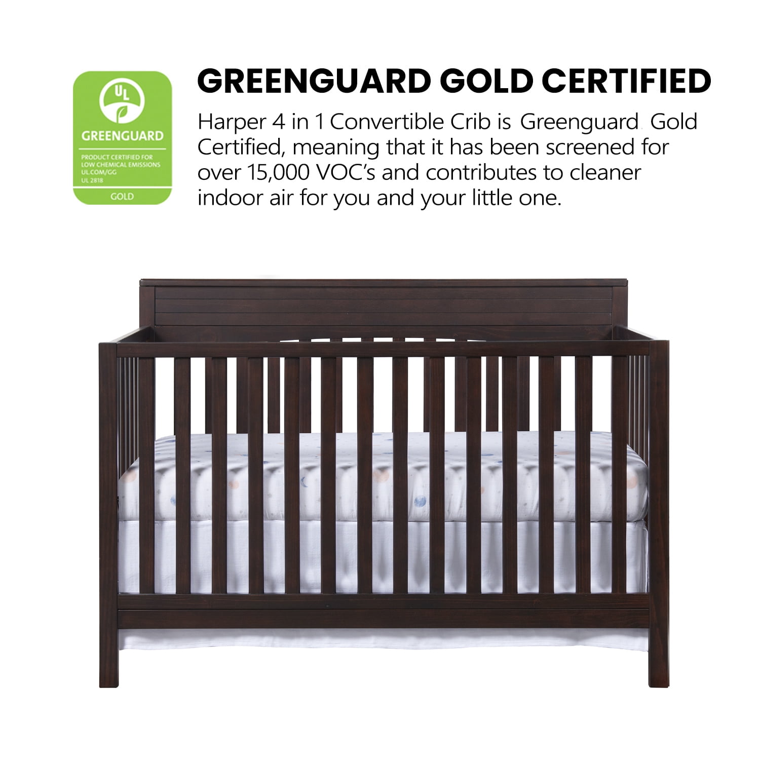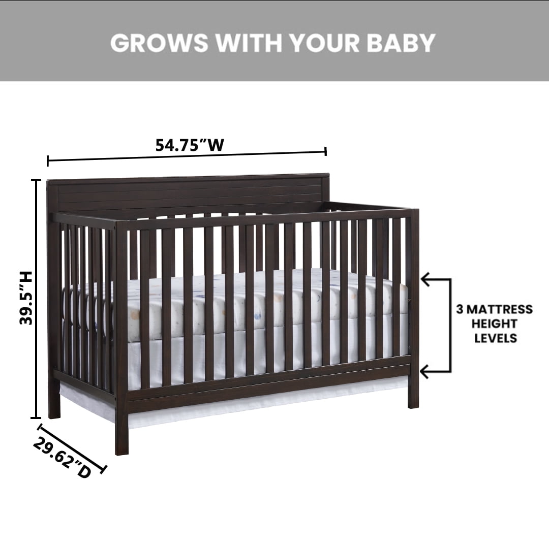 Oxford Baby Harper 4-in-1 Convertible Crib, Espresso Brown, GREENGUARD Gold Certified, Wooden Crib