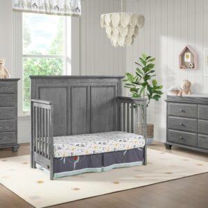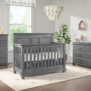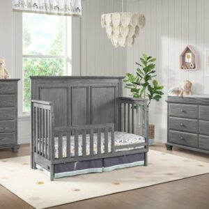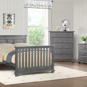 – COMPLETE NURSERY COLLECTION: The Kenilworth Collection by Oxford Baby in Graphite Gray features a 4-in-1 Convertible Crib (21111530), 2-Drawer Nightstand (21022530), 6-Drawer Dresser (21036530), 5-Drawer Chest (21035530), Changing Topper (22265530), Toddler Bed Guard Rail (22295530), Full-Size Bed Conversion Kit (22288530), and Oxford Baby Crib Mattress, sold separately; The Kenilworth Collection is available in Graphite Gray and Stone Wash finishes